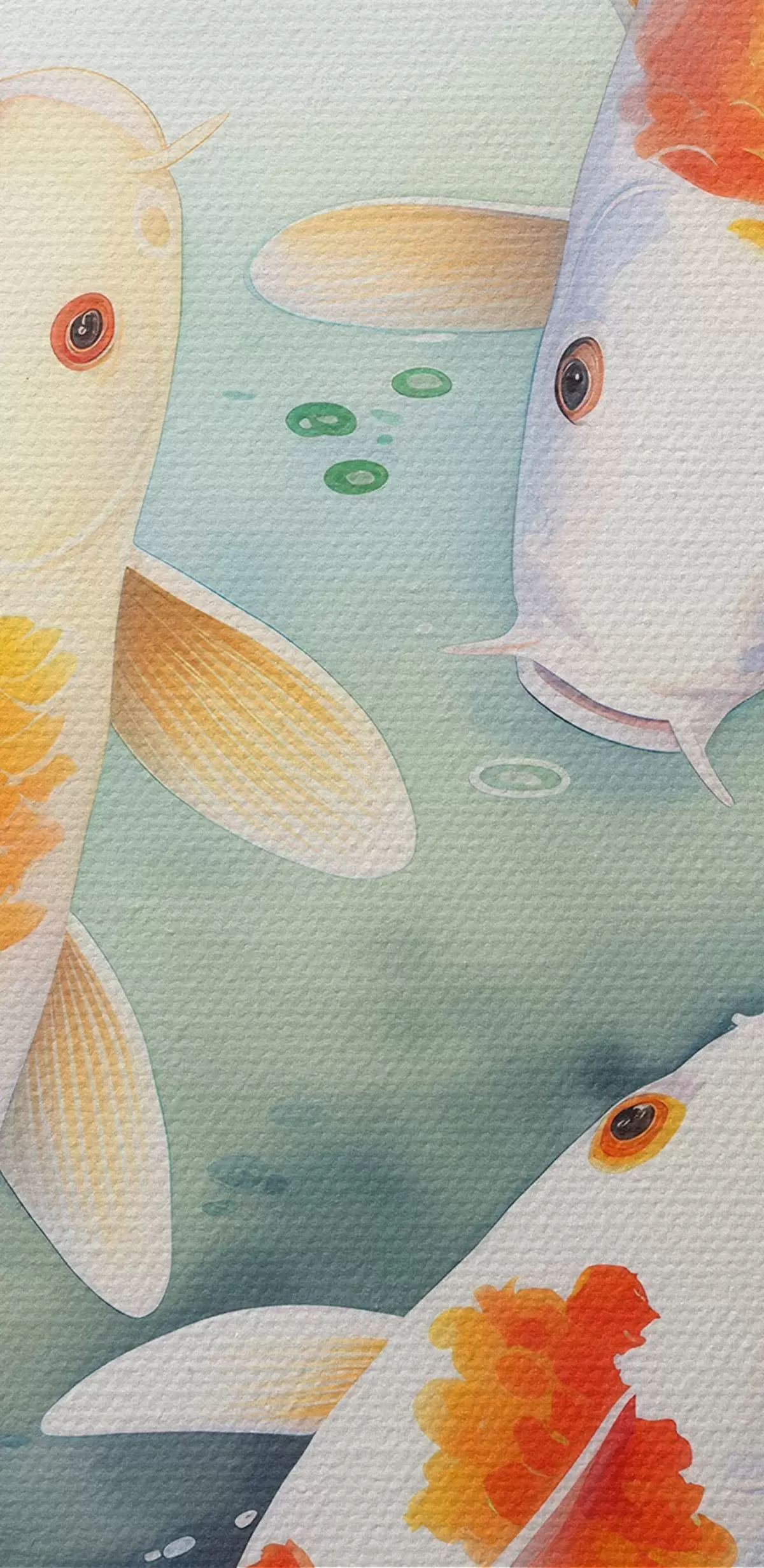Drei Materialtypen stehen zur Verfügung: Economic Canvas - ein dichtes und haltbares Material für den Digitaldruck, identisch mit Malerleinwand, wasserfeste Oberfläche, realistische Wiedergabe von Details, mittelkörniges Material. Premium Canvas - die Textur ähnelt der einer Malerleinwand (verwobene kleine Fäden). Weiche, detaillierte Wiedergabe des Bildes auf einer matten Oberfläche. Eco-Premium - hochwertiges Gewebe aus 100% Baumwolle. Dank der natürlichen Baumwollfasern ist das Material langlebig und verschleißfest. Hervorragende Farbwiedergabe und Detailtreue.