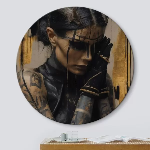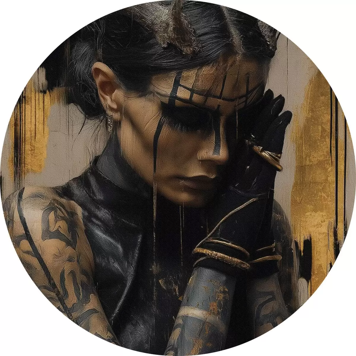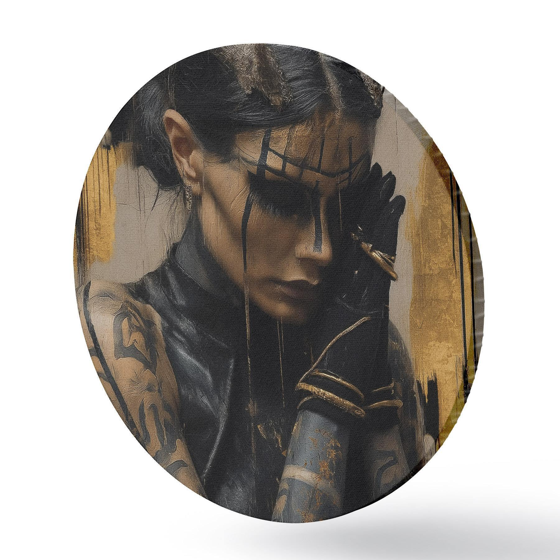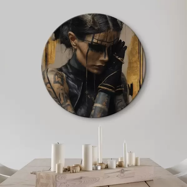 Runde Wandbilder Frau mit Hörnern in einem dunklen Look mit schwarzen Gesichtszügen Nr r46144