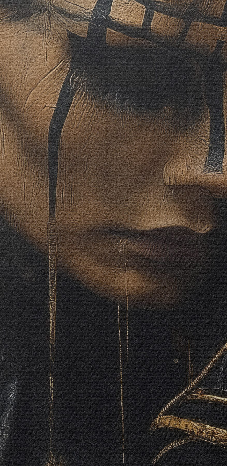 Das Bild kann vorsichtig mit einem trockenen, weichen Tuch oder Schwamm abgewischt werden; es wird nicht empfohlen, feuchte Produkte zu verwenden. Die Verwendung eines feuchten Schwamms ist nur zulässig, wenn das Bild lackiert wurde.