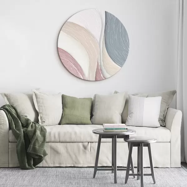 Runde Wandbilder Leichte abstrakte Wellen in zartrosa und grauweißen Farbtönen r46153