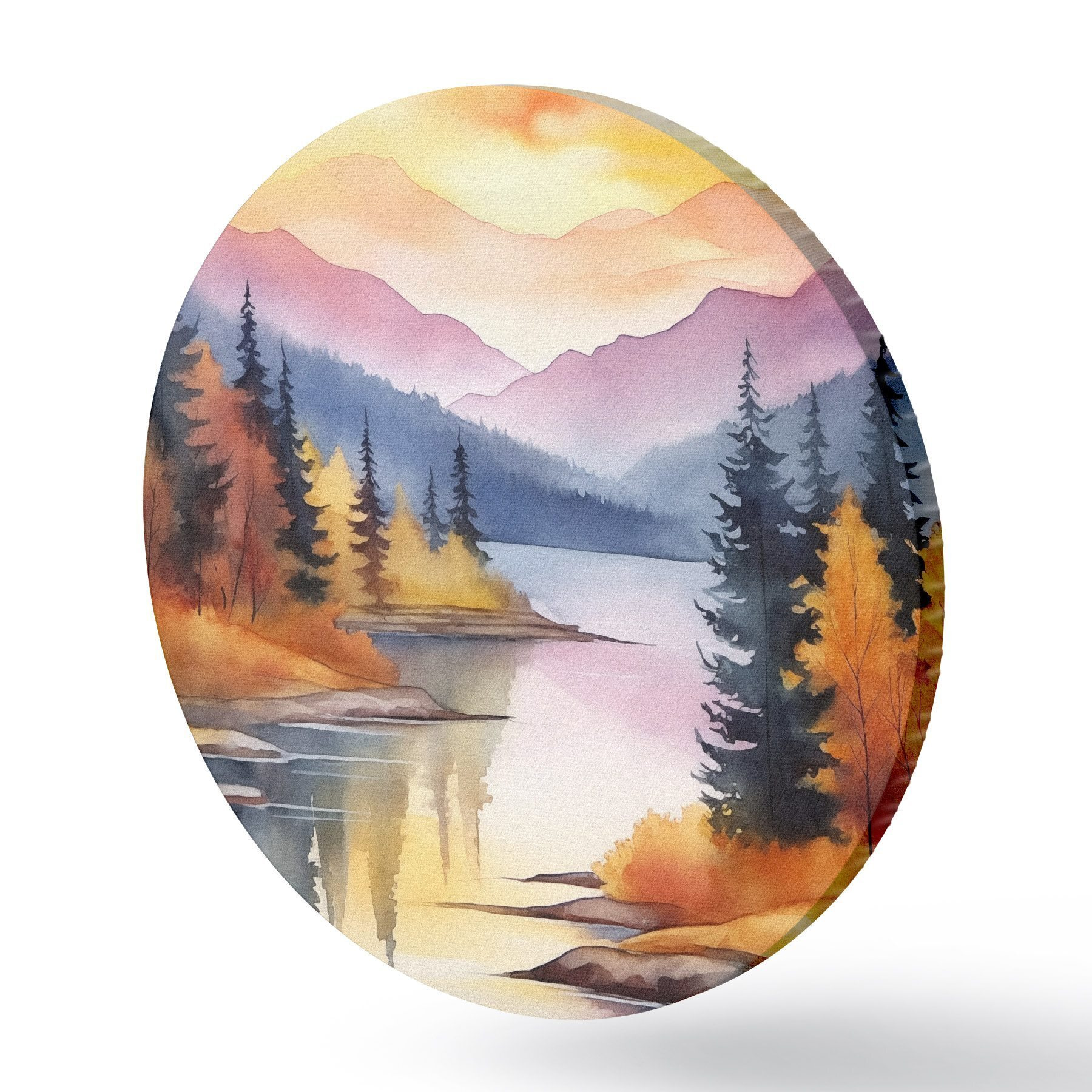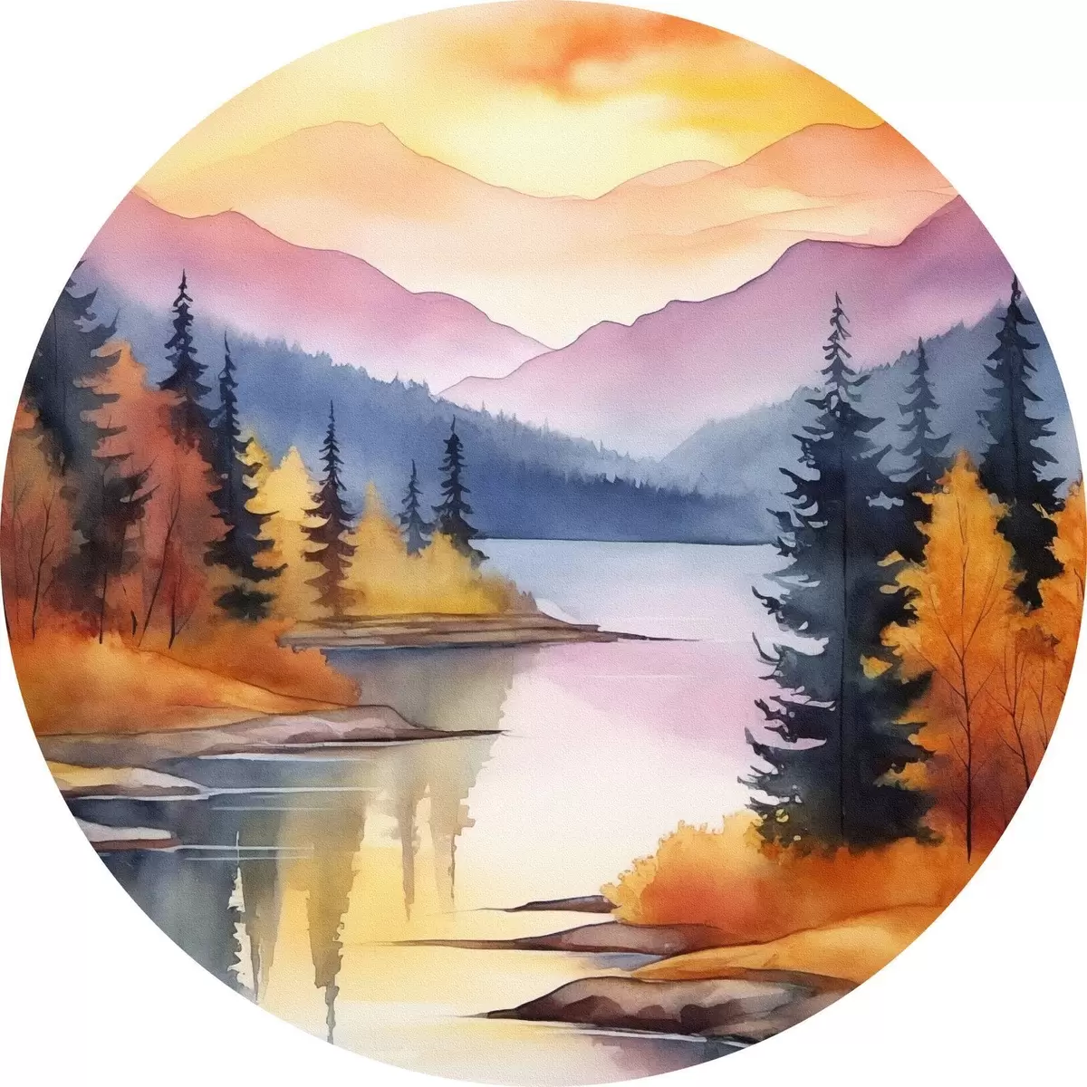 Runde Wandbilder Herbstlandschaft am See mit strahlendem Himmel Nr r46155