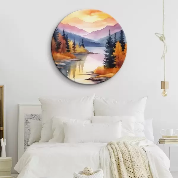 Runde Wandbilder Herbstlandschaft am See mit strahlendem Himmel r46155