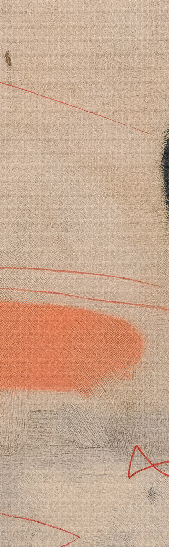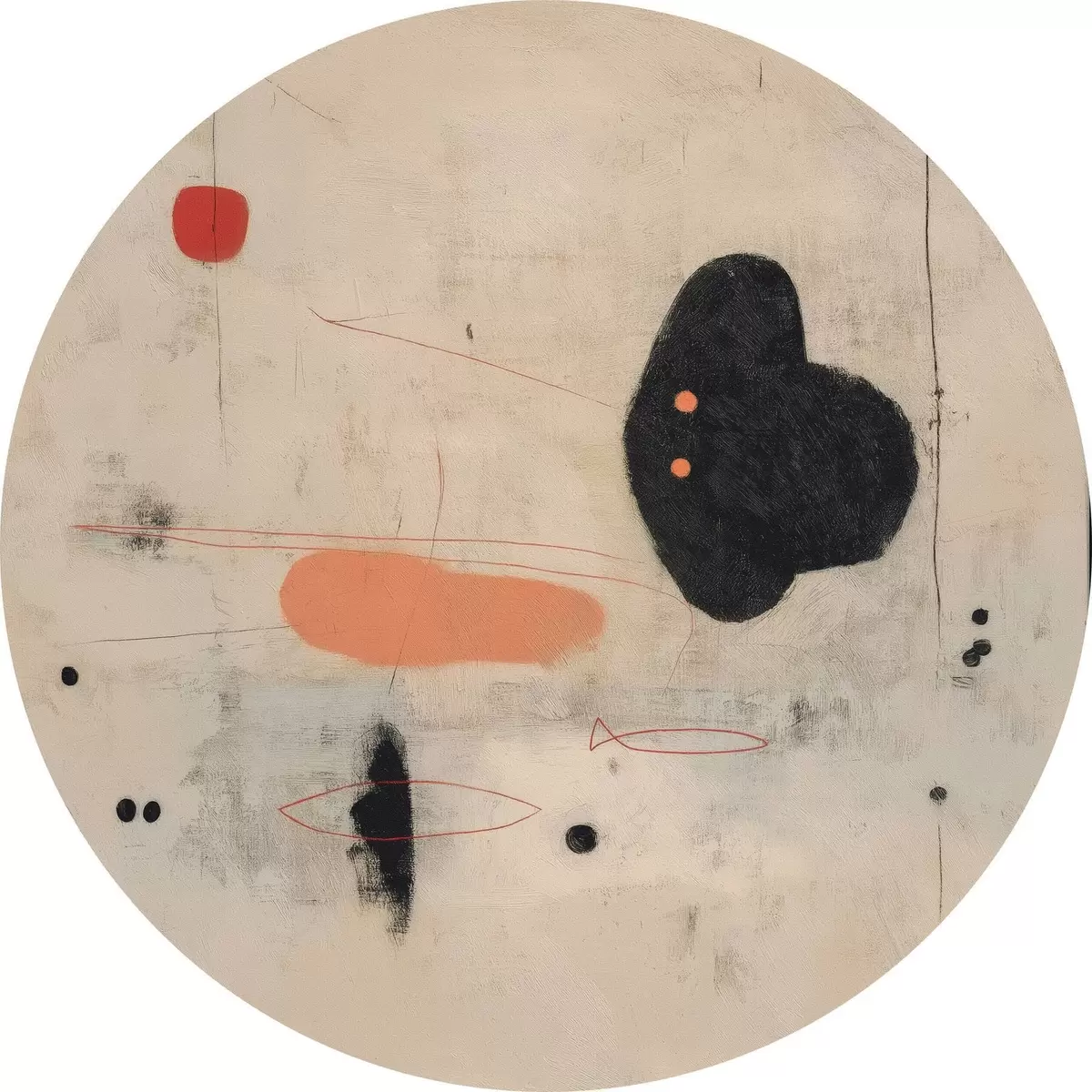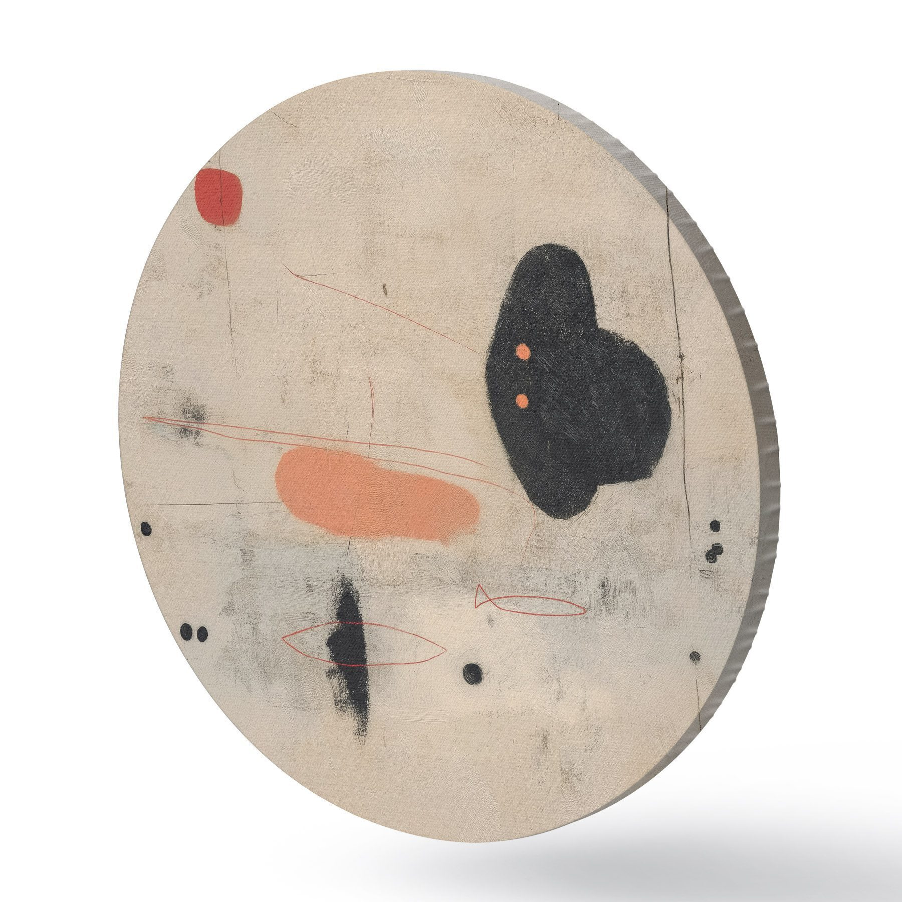 Runde Wandbilder Minimalistische abstrakte Zeichnung mit schwarzen und korallenfarbenen Akzenten r46159
