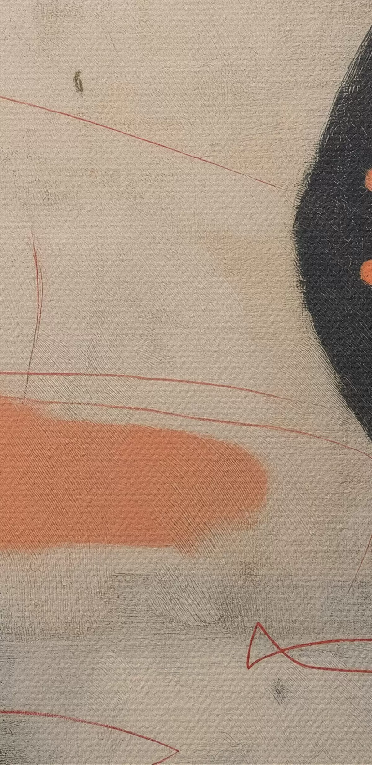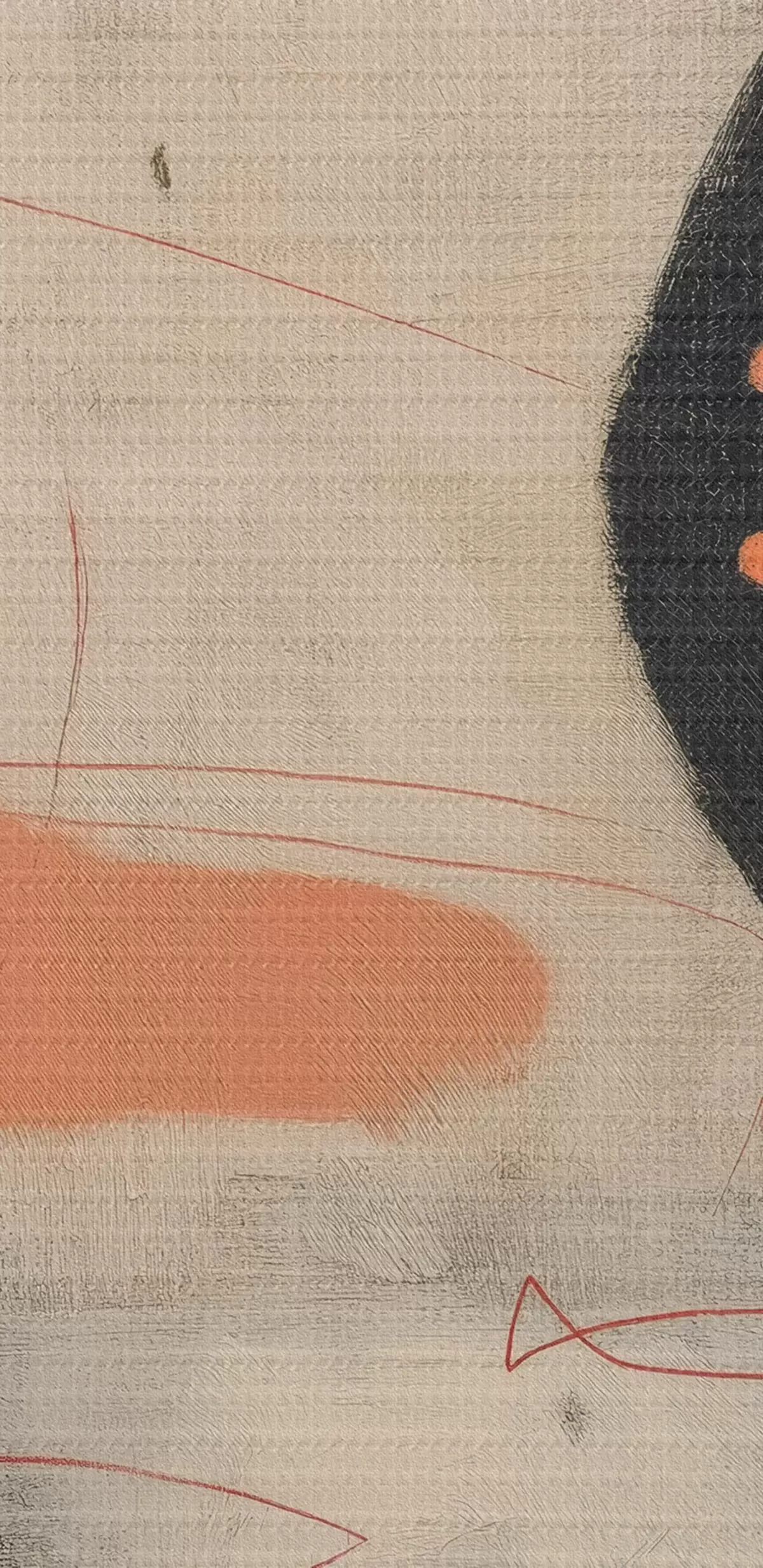 Runde Wandbilder Minimalistische abstrakte Zeichnung mit schwarzen und korallenfarbenen Akzenten r46159