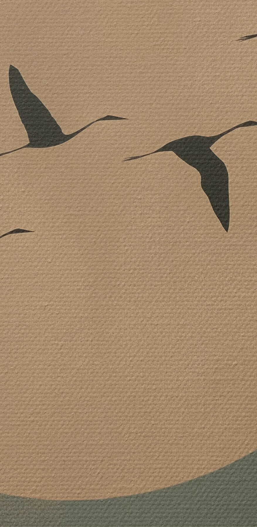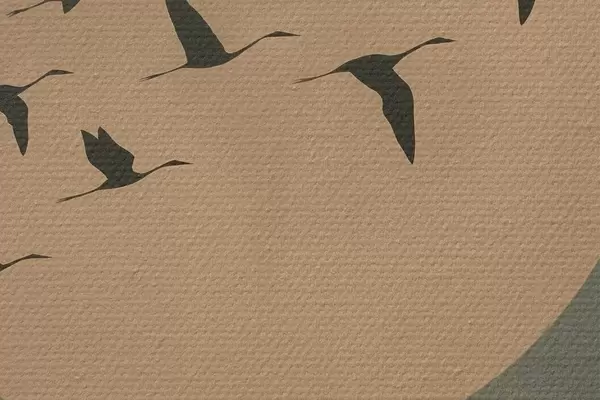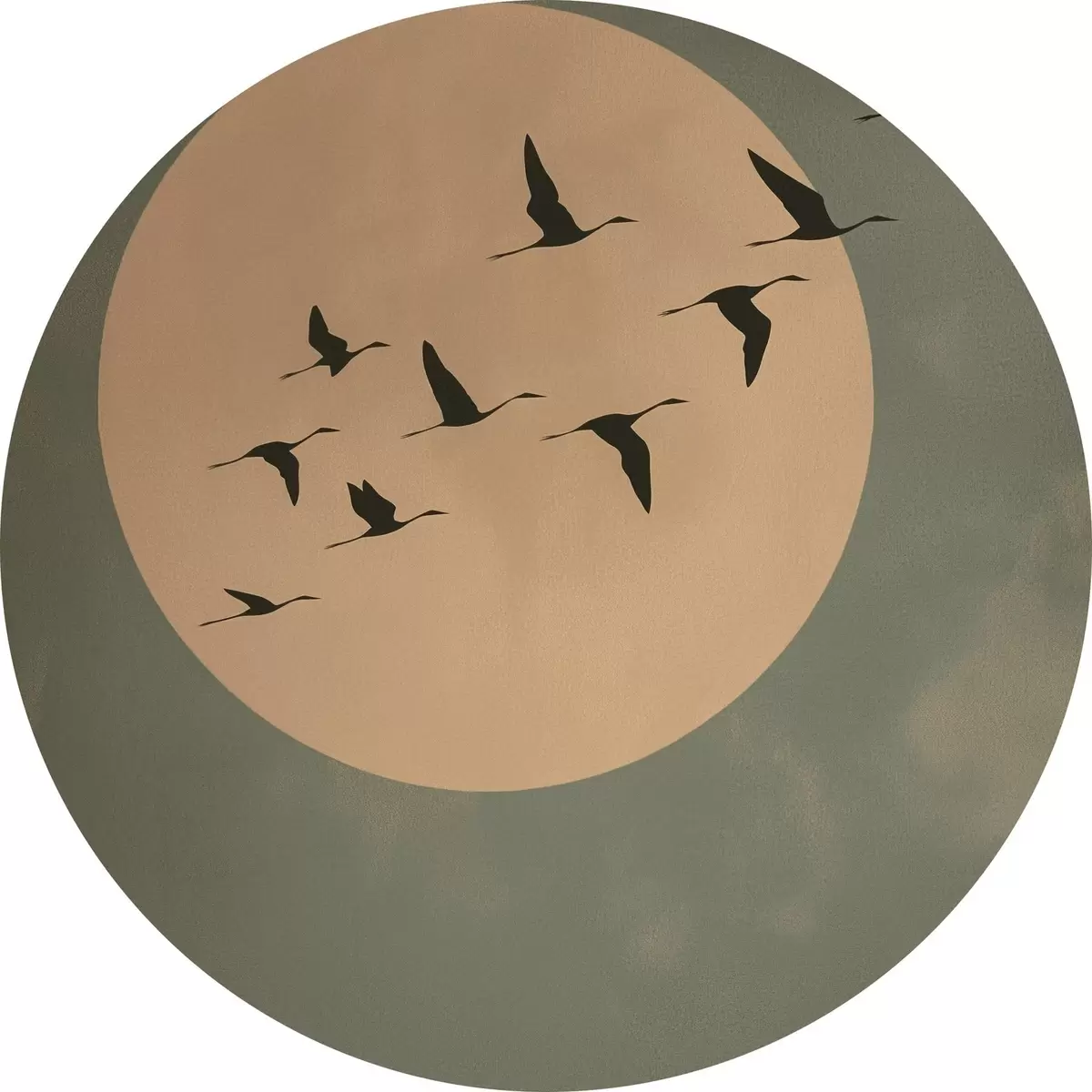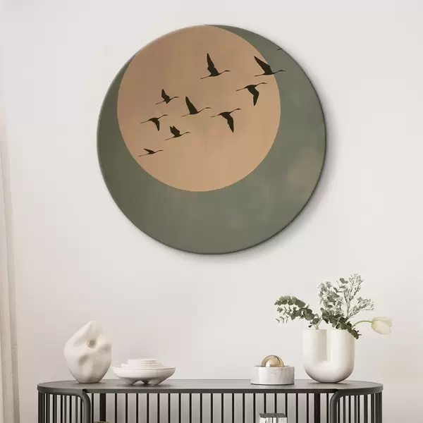 Runde Wandbilder Ein Vogelschwarm fliegt vor einem großen, warmen Mond Nr r46162