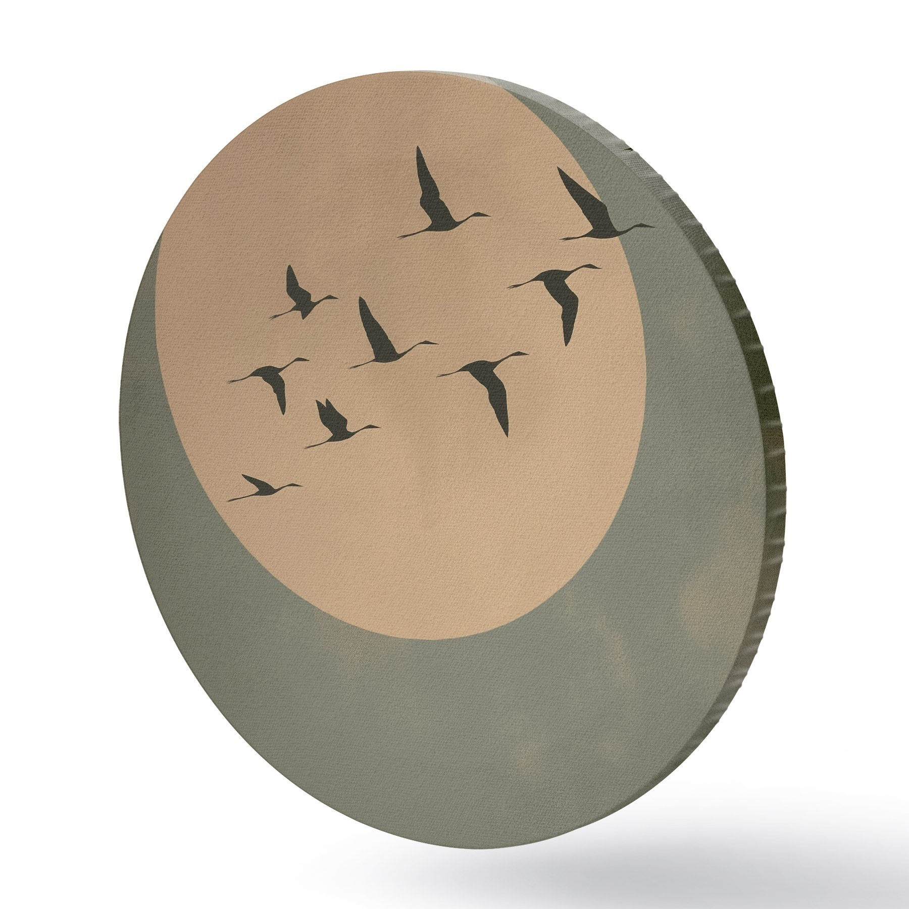 Runde Wandbilder Ein Vogelschwarm fliegt vor einem großen, warmen Mond r46162