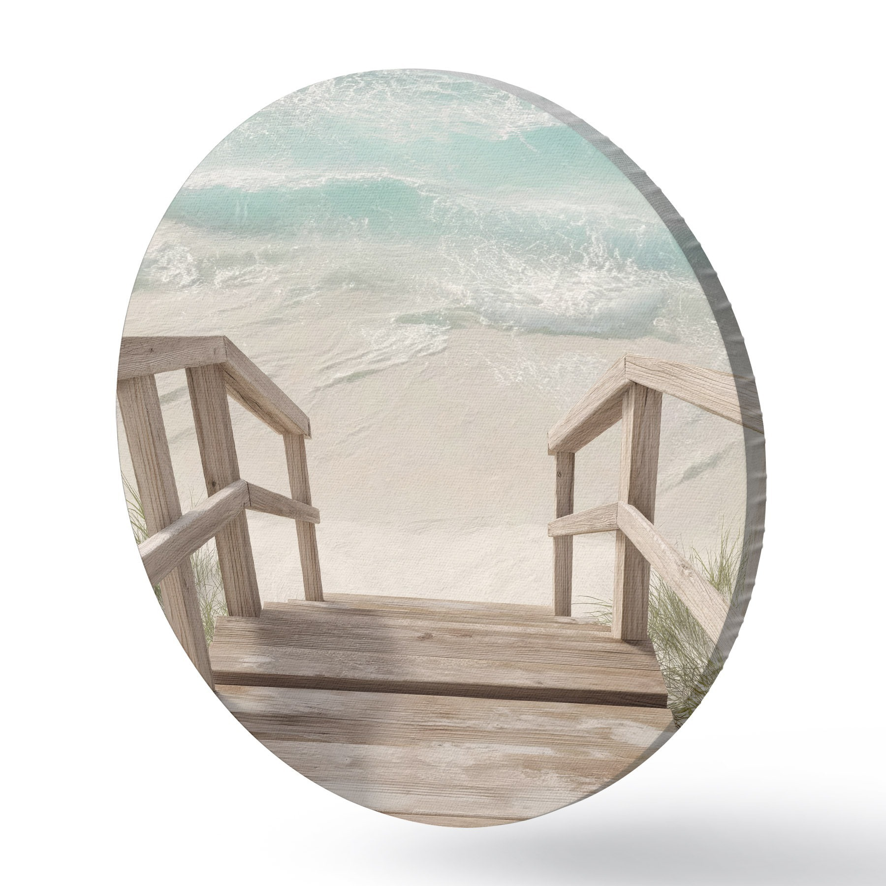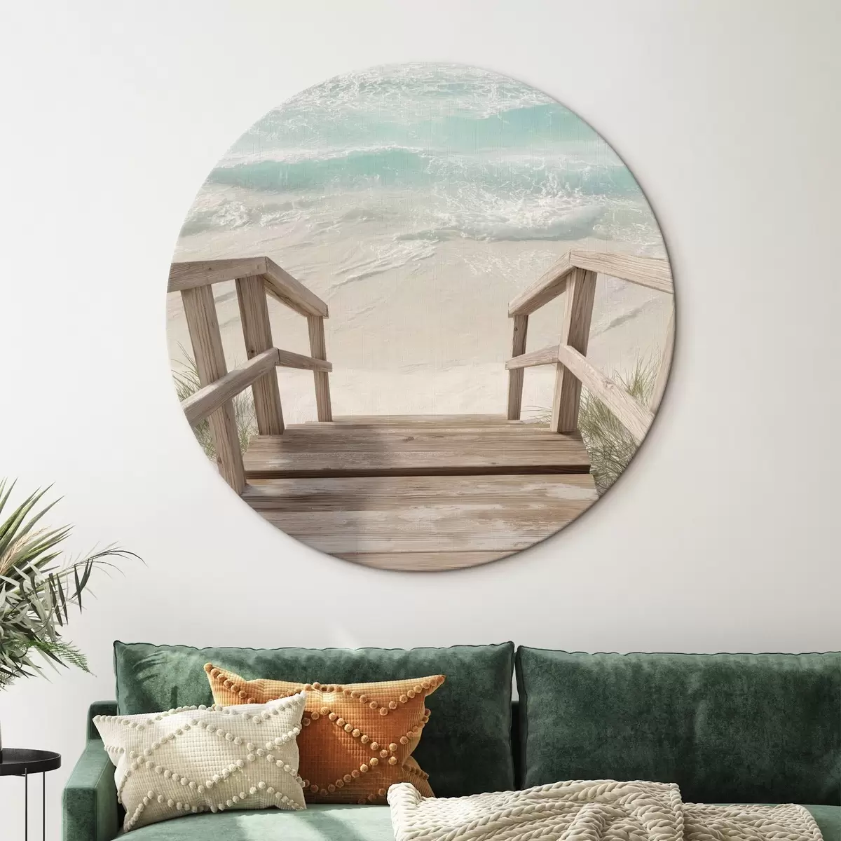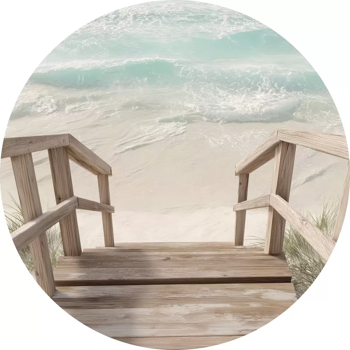 Runde Wandbilder Holztreppe, die zu einem türkisfarbenen Strand führt Nr r46163