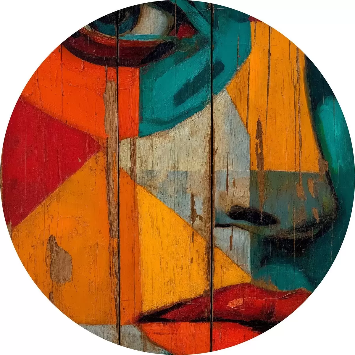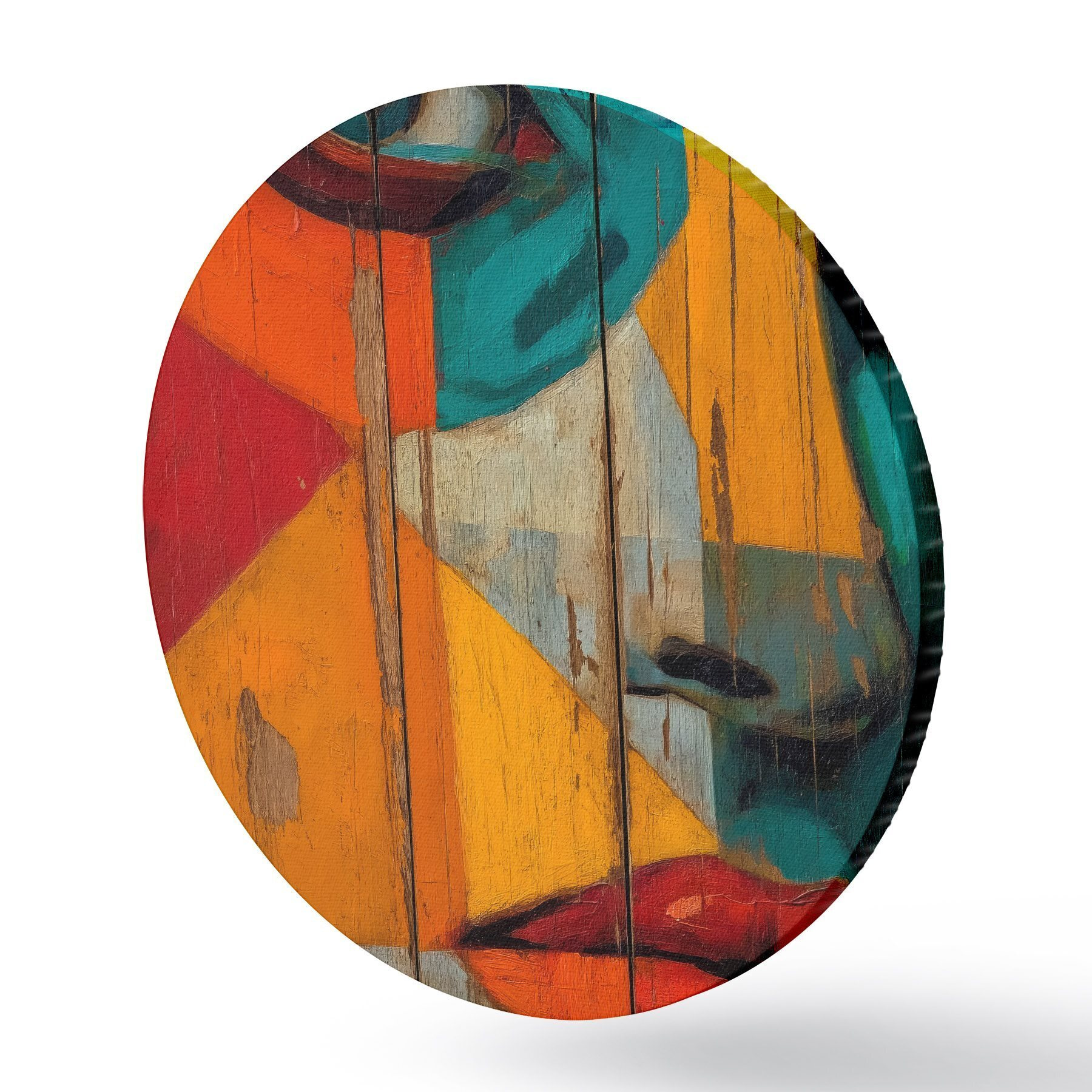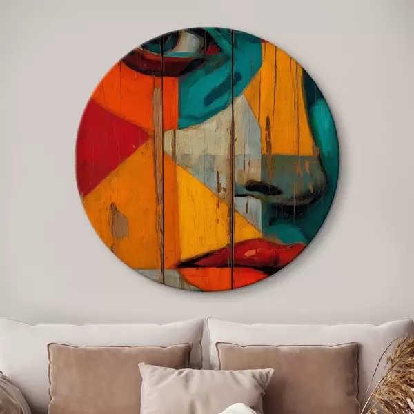 Runde Wandbilder Helles geometrisches Gesichtsporträt auf Holzbrettern Nr r46165