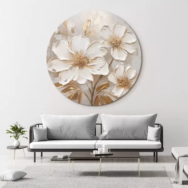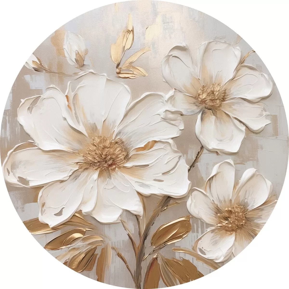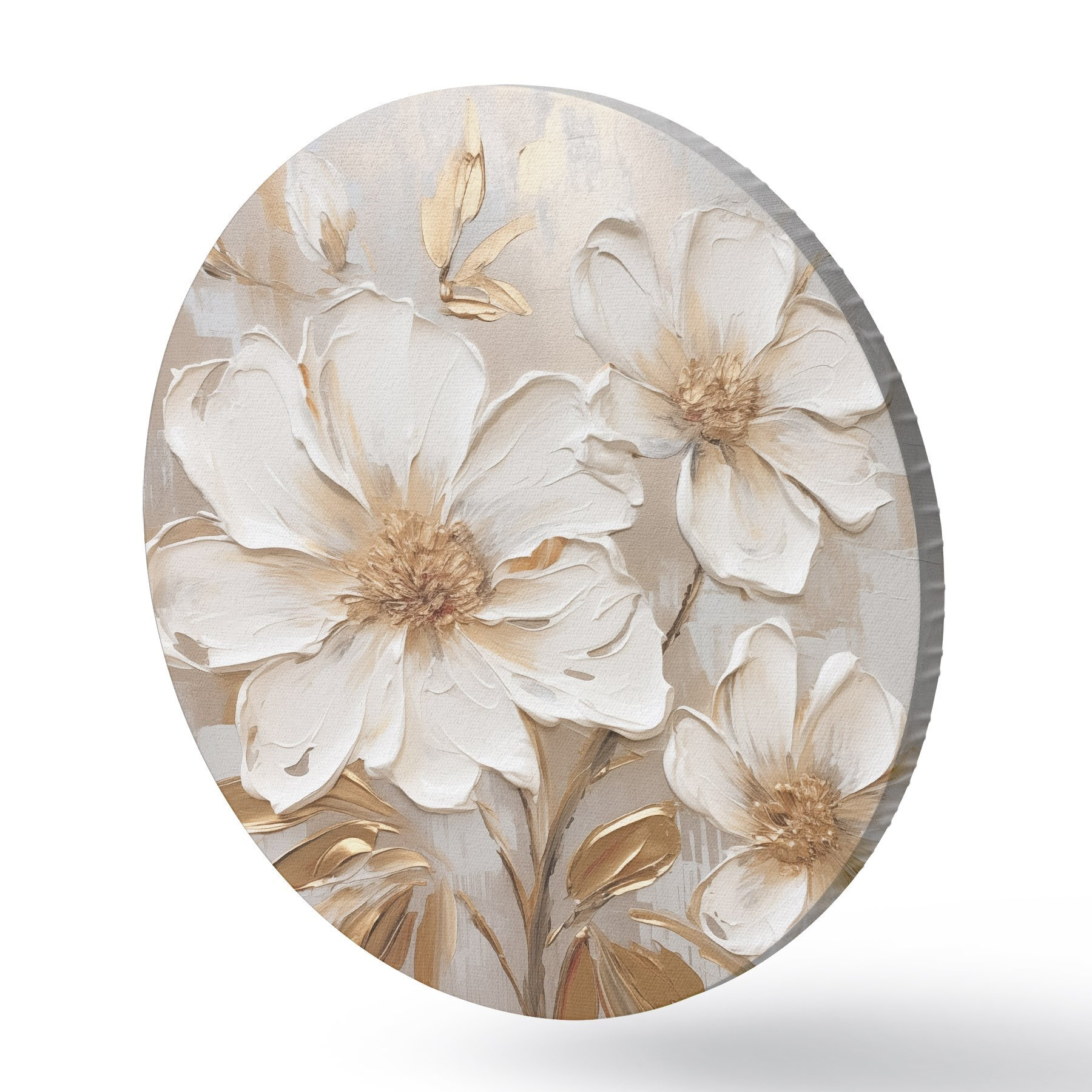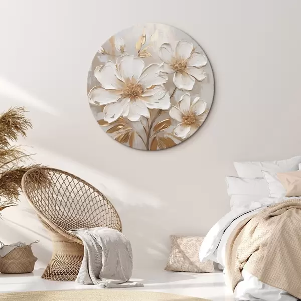 Runde Wandbilder Strukturierte Blumen auf hellem Hintergrund mit warmen Farbtönen Nr r46166