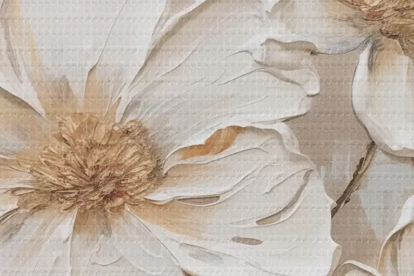 Runde Wandbilder Strukturierte Blumen auf hellem Hintergrund mit warmen Farbtönen Nr r46166