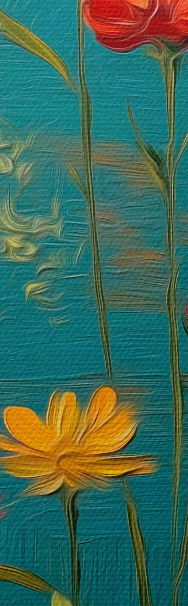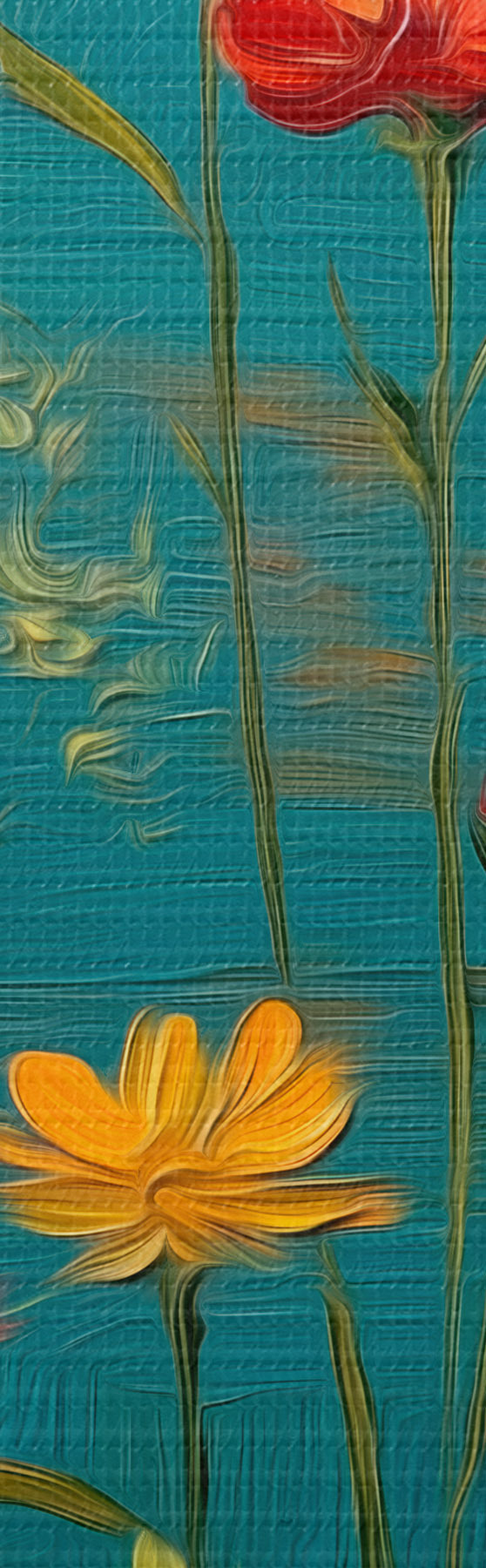 Runde Wandbilder Wildblumen auf tief türkisfarbenem Hintergrund r46169