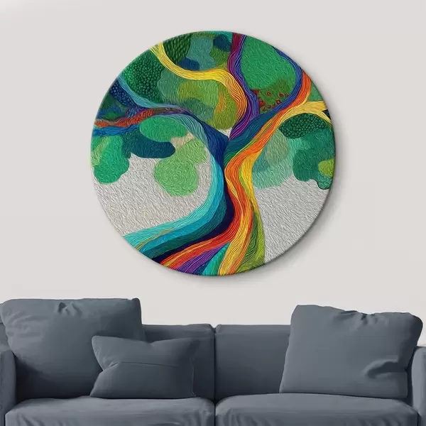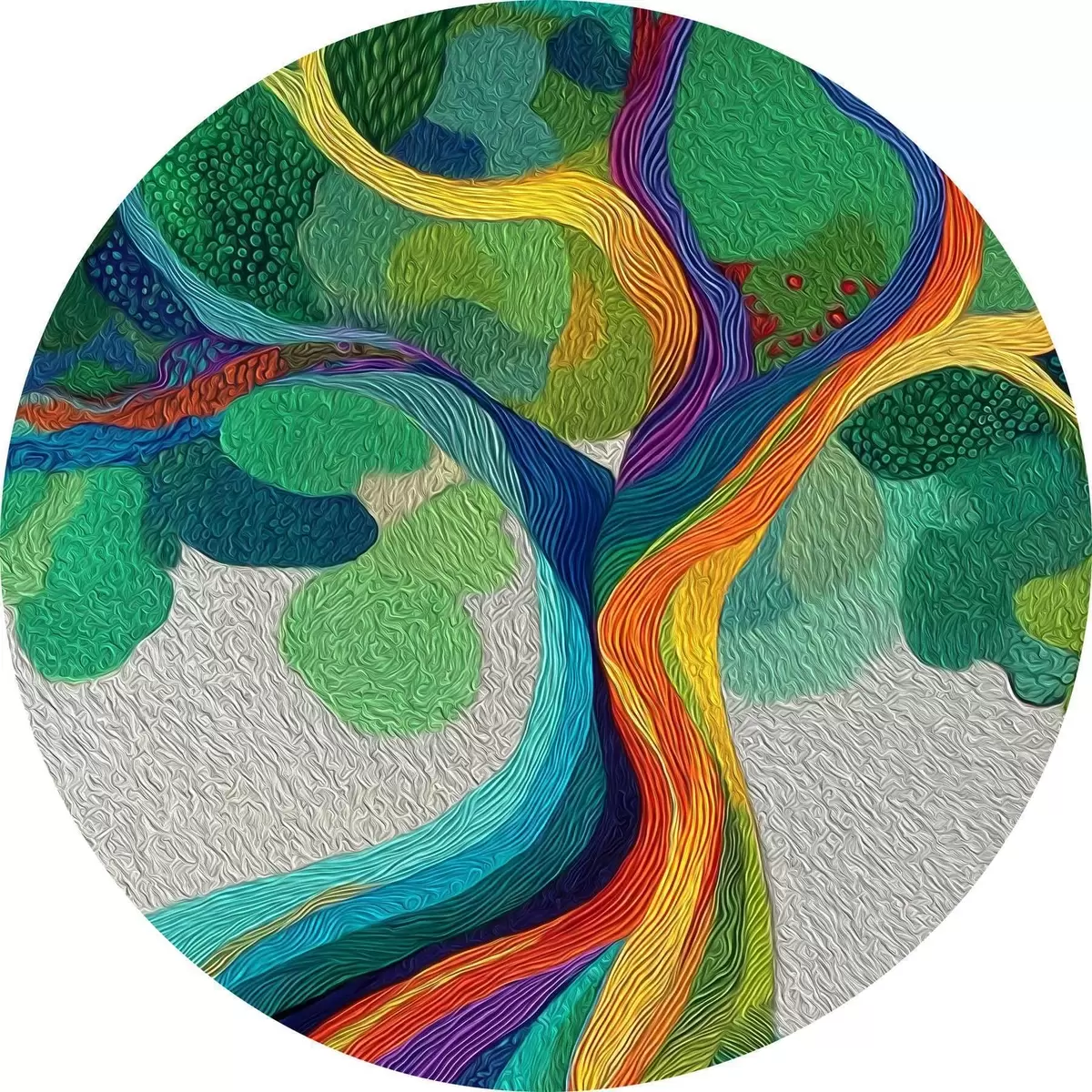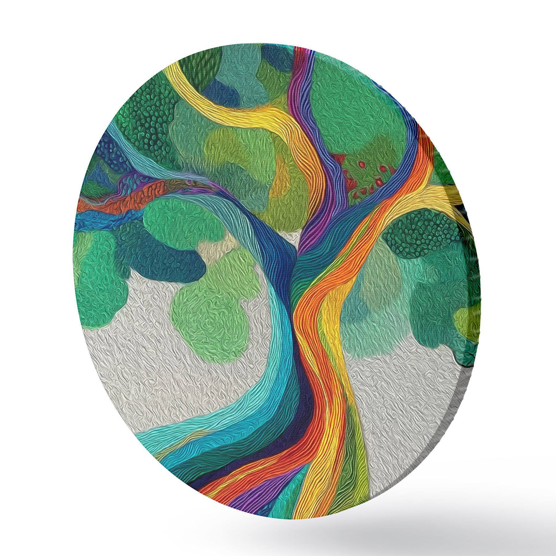 Runde Wandbilder Baum mit Regenbogenästen auf grünem Hintergrund Nr r46173