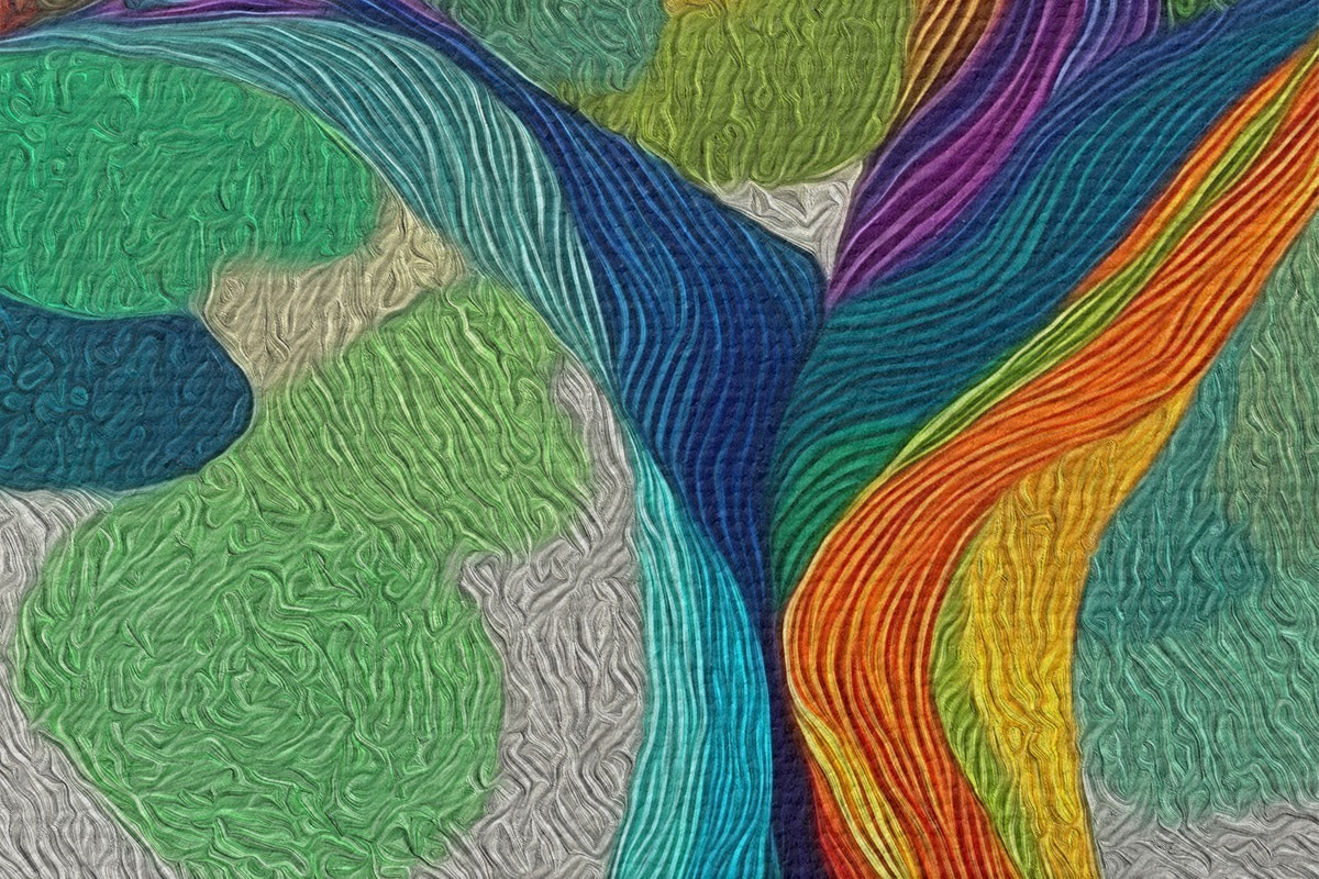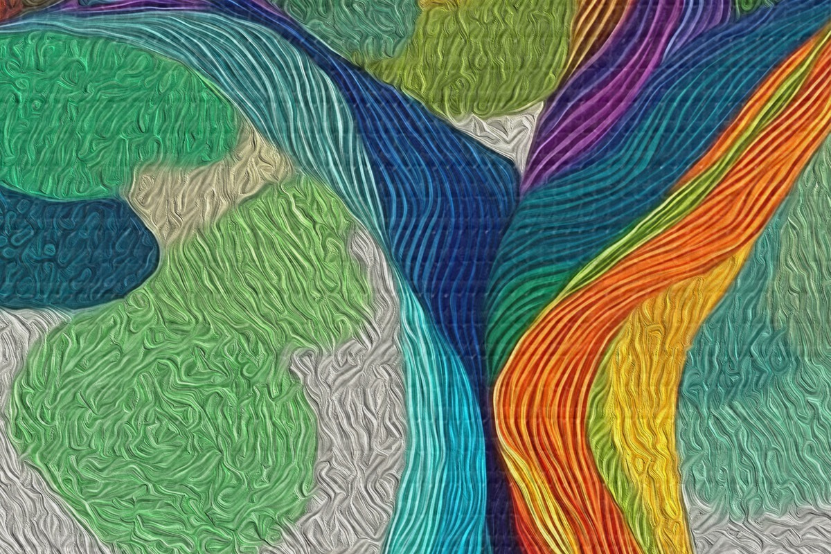 Runde Wandbilder Baum mit Regenbogenästen auf grünem Hintergrund Nr r46173