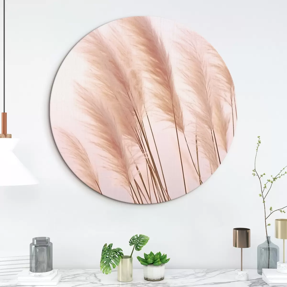 Runde Wandbilder Helle Gräser mit flauschigen Spitzen auf hellem Hintergrund Nr r46179