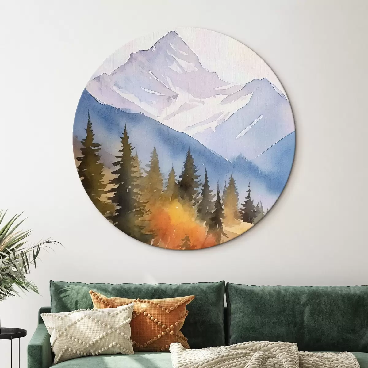 Runde Wandbilder Herbstliche Berglandschaft mit einem Fluss und einem farbenfrohen Wald Nr r46187
