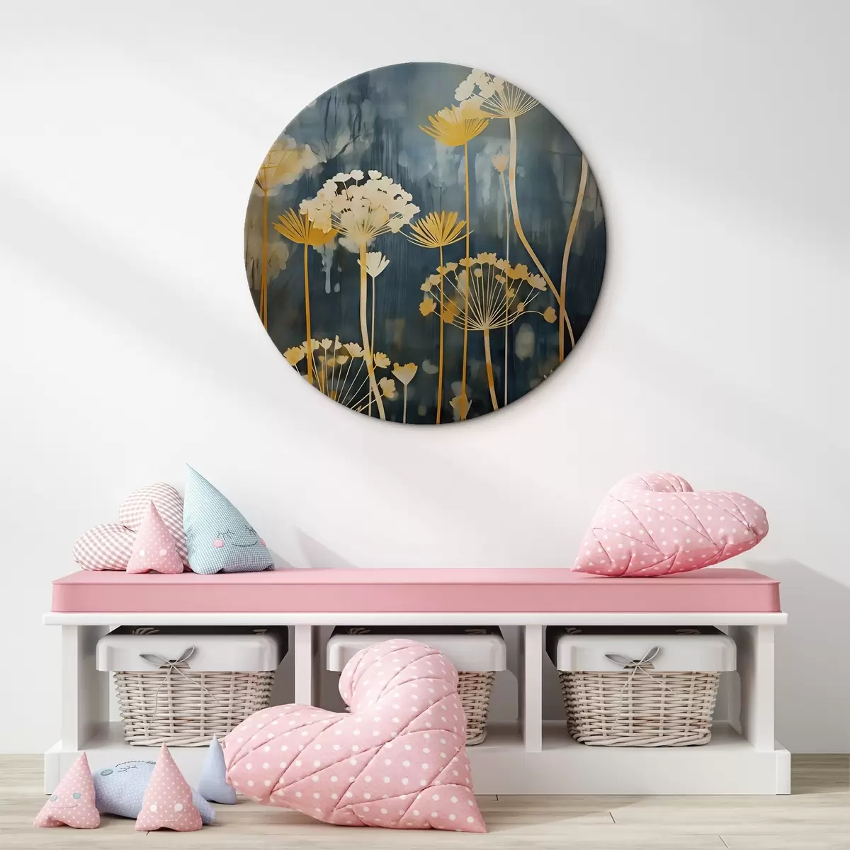Runde Wandbilder Stilisierte Blumen mit dünnen Stielen auf dunklem Hintergrund Nr r46188