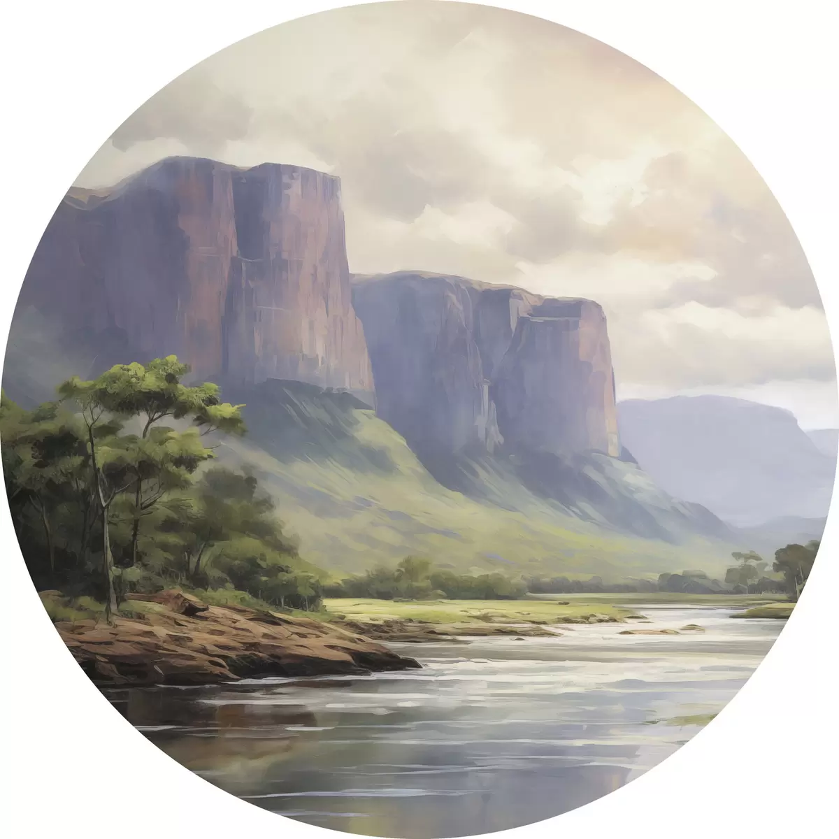 Runde Wandbilder Park mit Bergblick Nr r46194