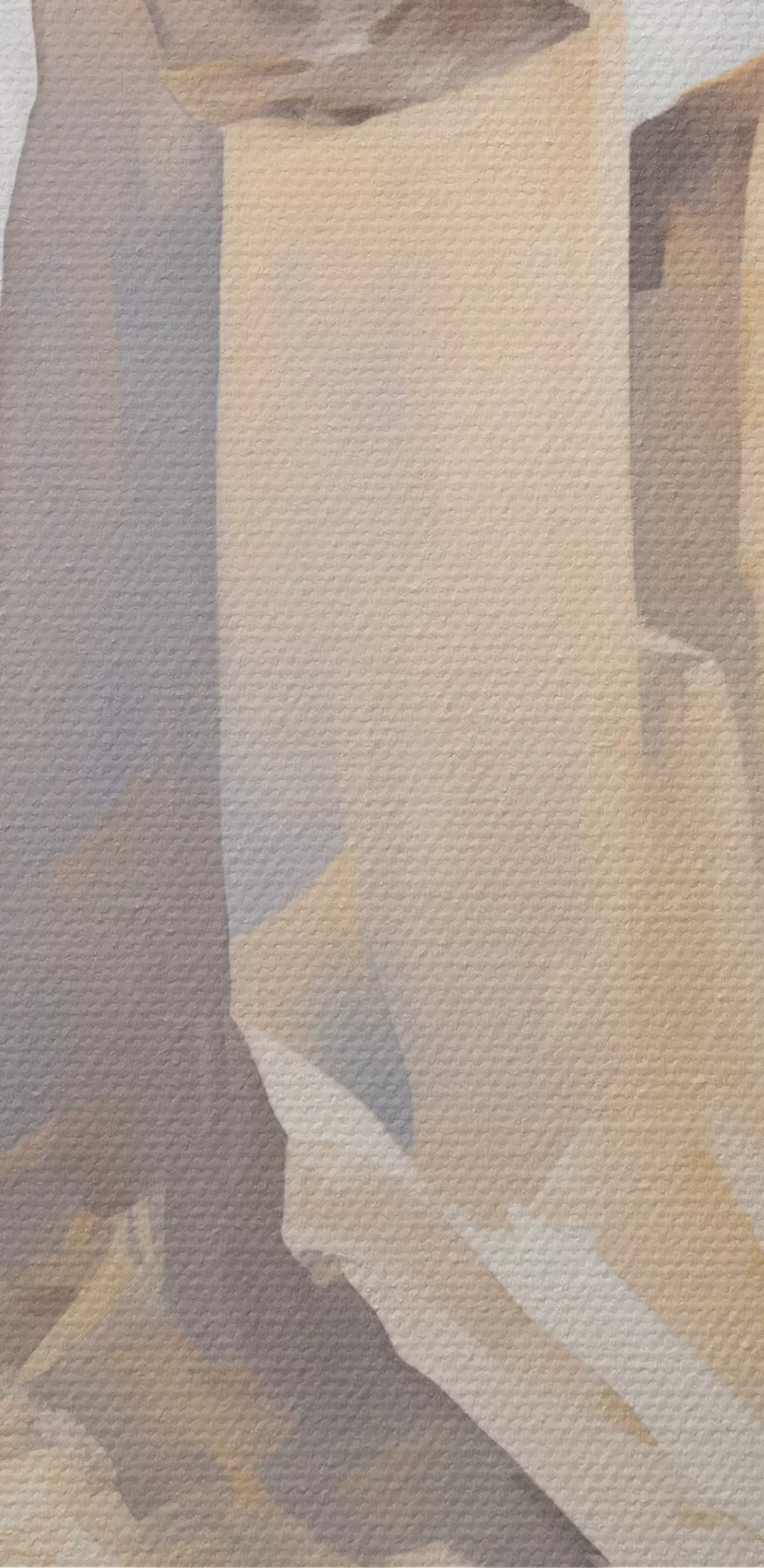 Um die Leinwand auf Keilrahmen zu spannen, ohne das Bild zu beschädigen, verwenden wir ein gespiegeltes Bild.