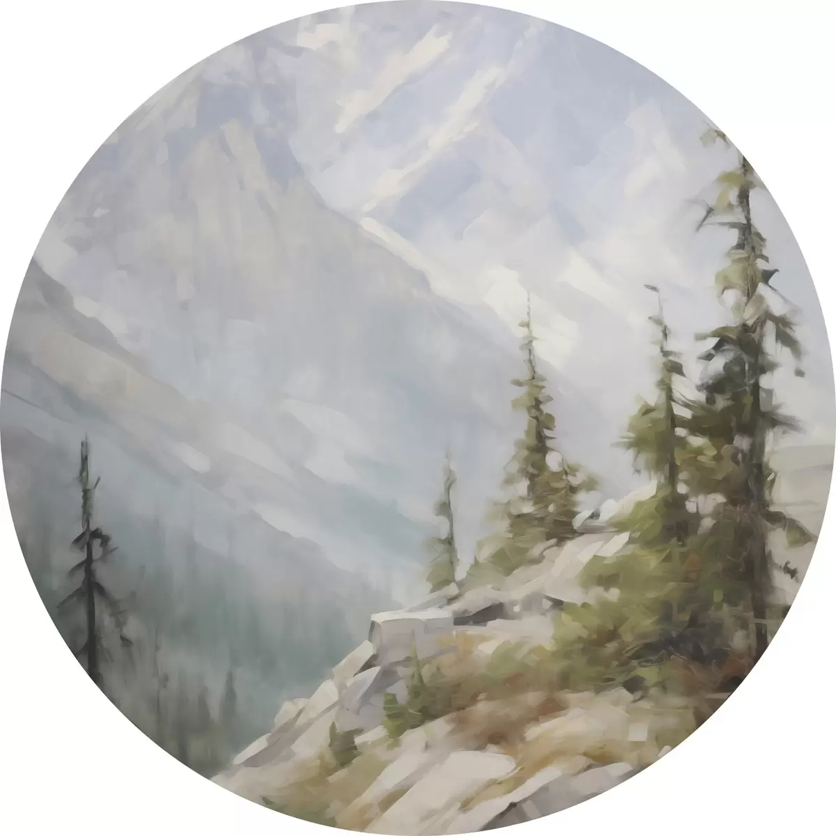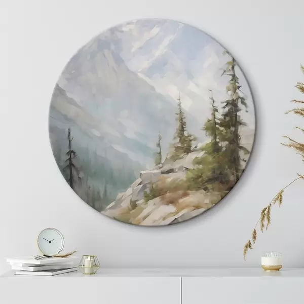 Runde Wandbilder Fichten vor dem Hintergrund der Berge Nr r46202