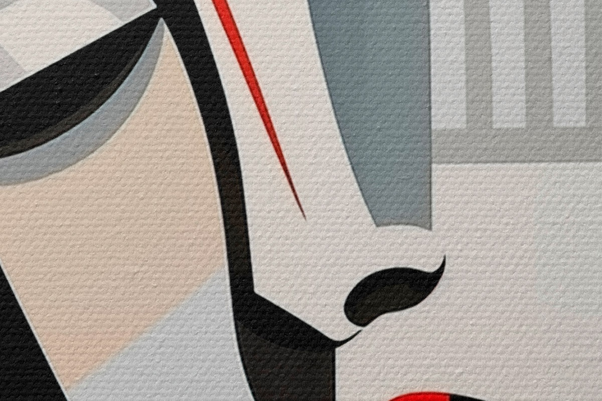 Um die Leinwand auf Keilrahmen zu spannen, ohne das Bild zu beschädigen, verwenden wir ein gespiegeltes Bild.