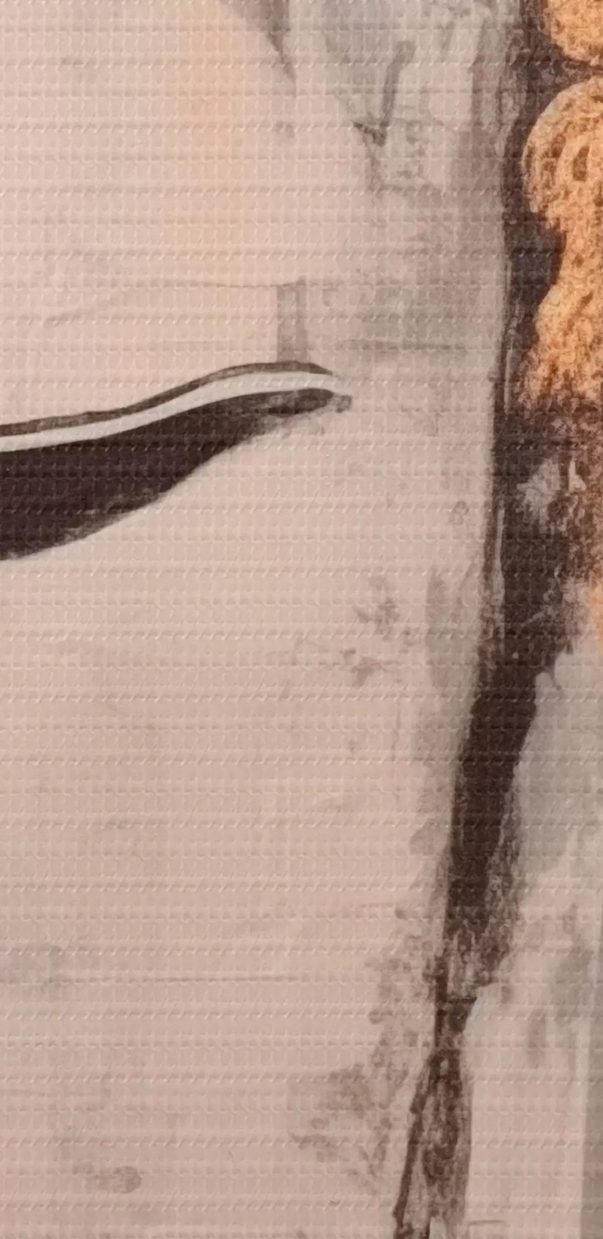 Das Bild kann vorsichtig mit einem trockenen, weichen Tuch oder Schwamm abgewischt werden; es wird nicht empfohlen, feuchte Produkte zu verwenden. Die Verwendung eines feuchten Schwamms ist nur zulässig, wenn das Bild lackiert wurde.
