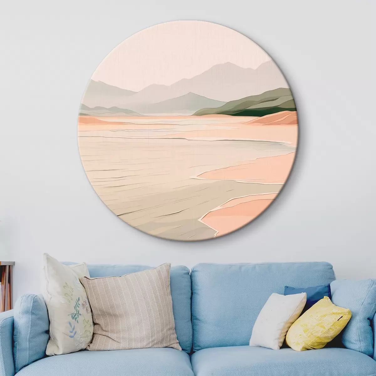 Runde Wandbilder Minimalistische Landschaft mit Bergen und Ufer Nr r46248