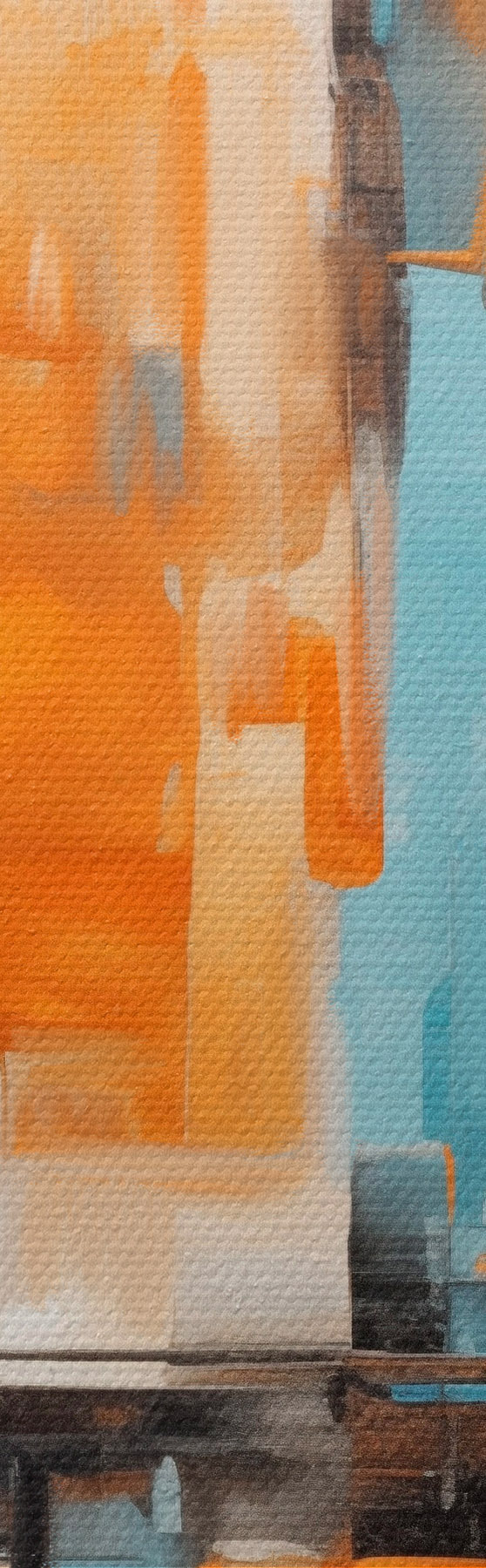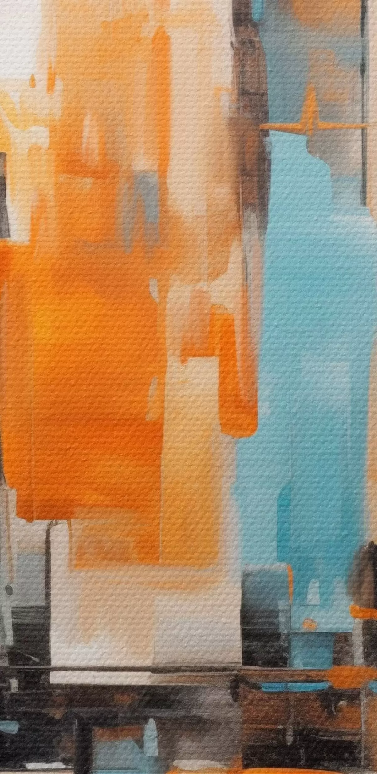 Runde Wandbilder Abstrakte Stadtlandschaft mit vertikalen Pinselstrichen in Orange-, Blau- und Weißtönen, Malstil r46267