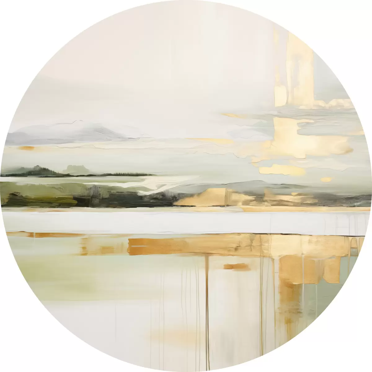 Runde Wandbilder Abstrakte Landschaft mit gelben Akzenten, eine minimalistische Komposition aus Land, Wasser und Himmel, mit gedämpften Farben Nr r46268