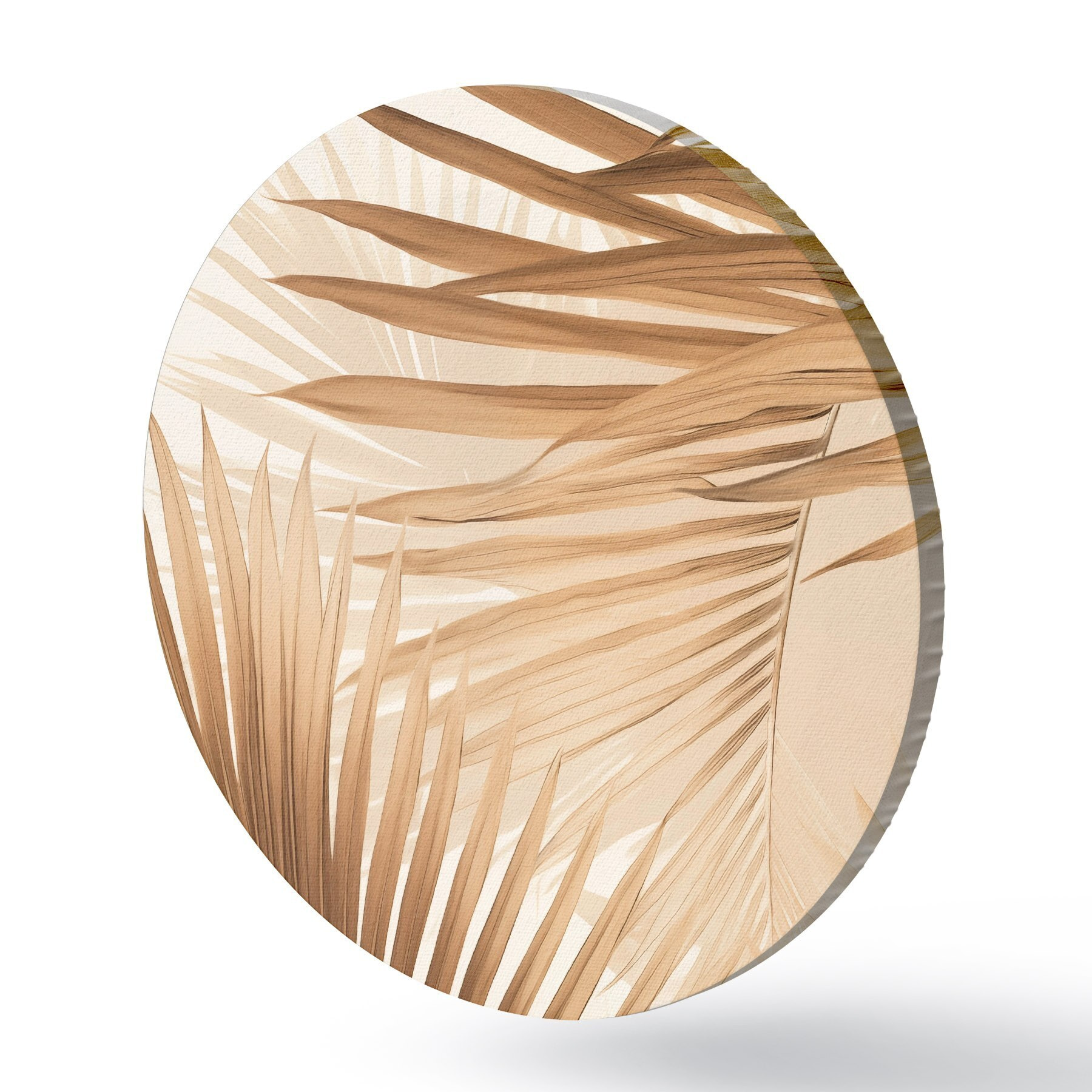 Runde Wandbilder Abstrakte Palmblätter in Brauntönen, tropisch, botanisch, Natur, minimalistisch, elegant, modernes Design r46275