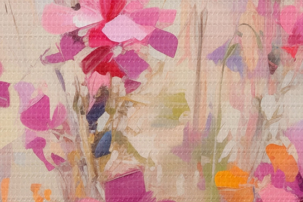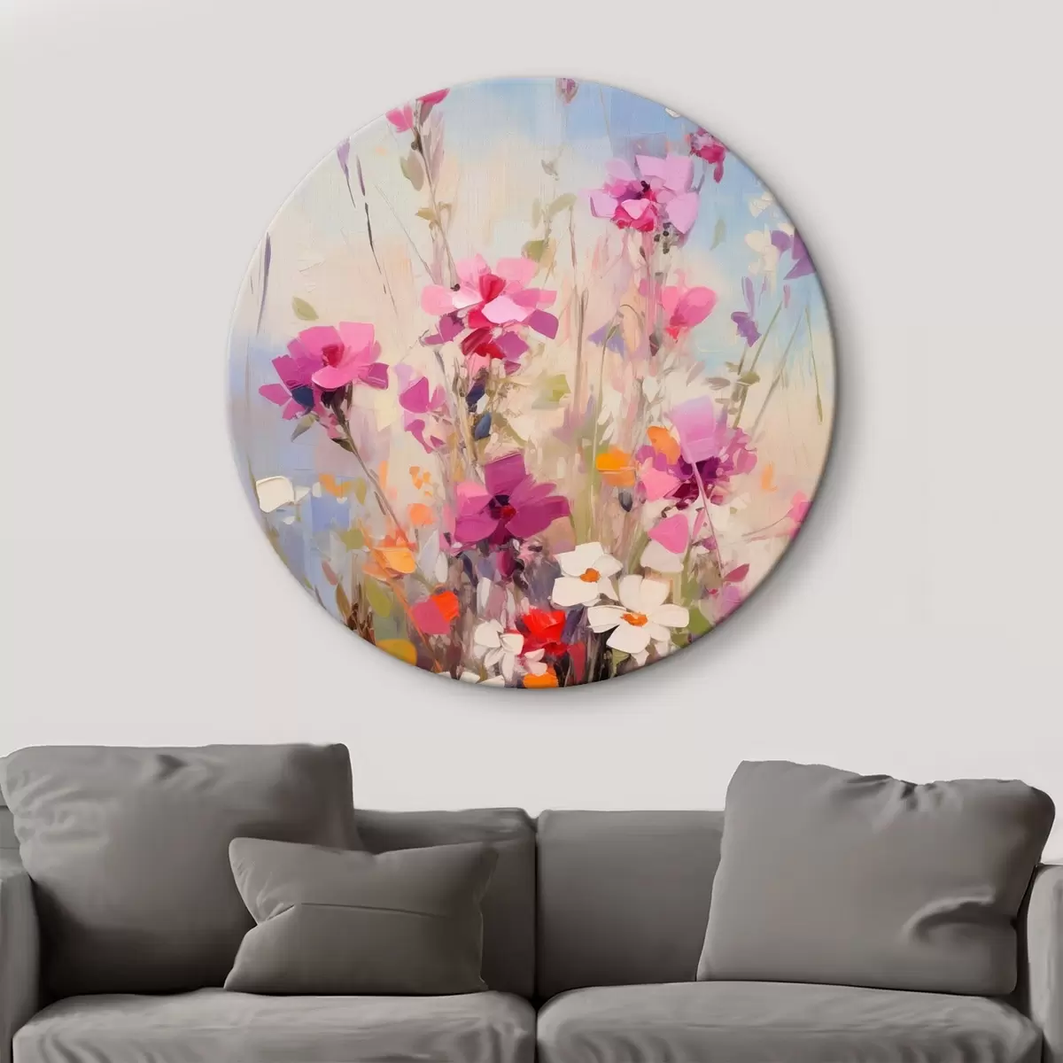 Runde Wandbilder Leuchtend rosa, weiße und grüne Blumen vor einem sanften, pastellfarbenen Hintergrund Nr r46278