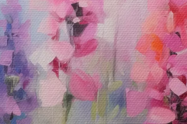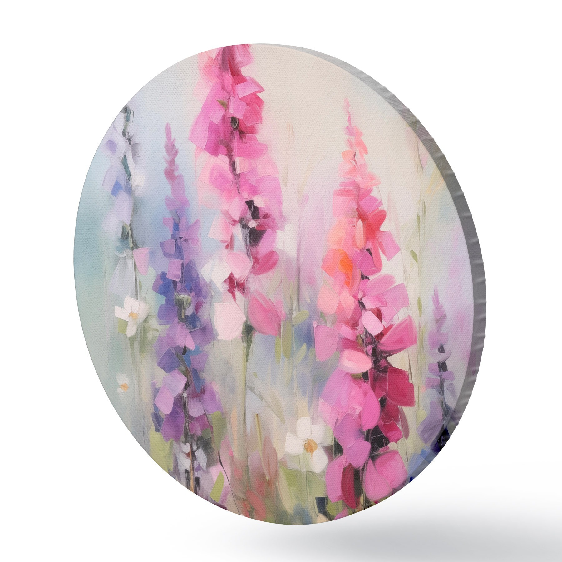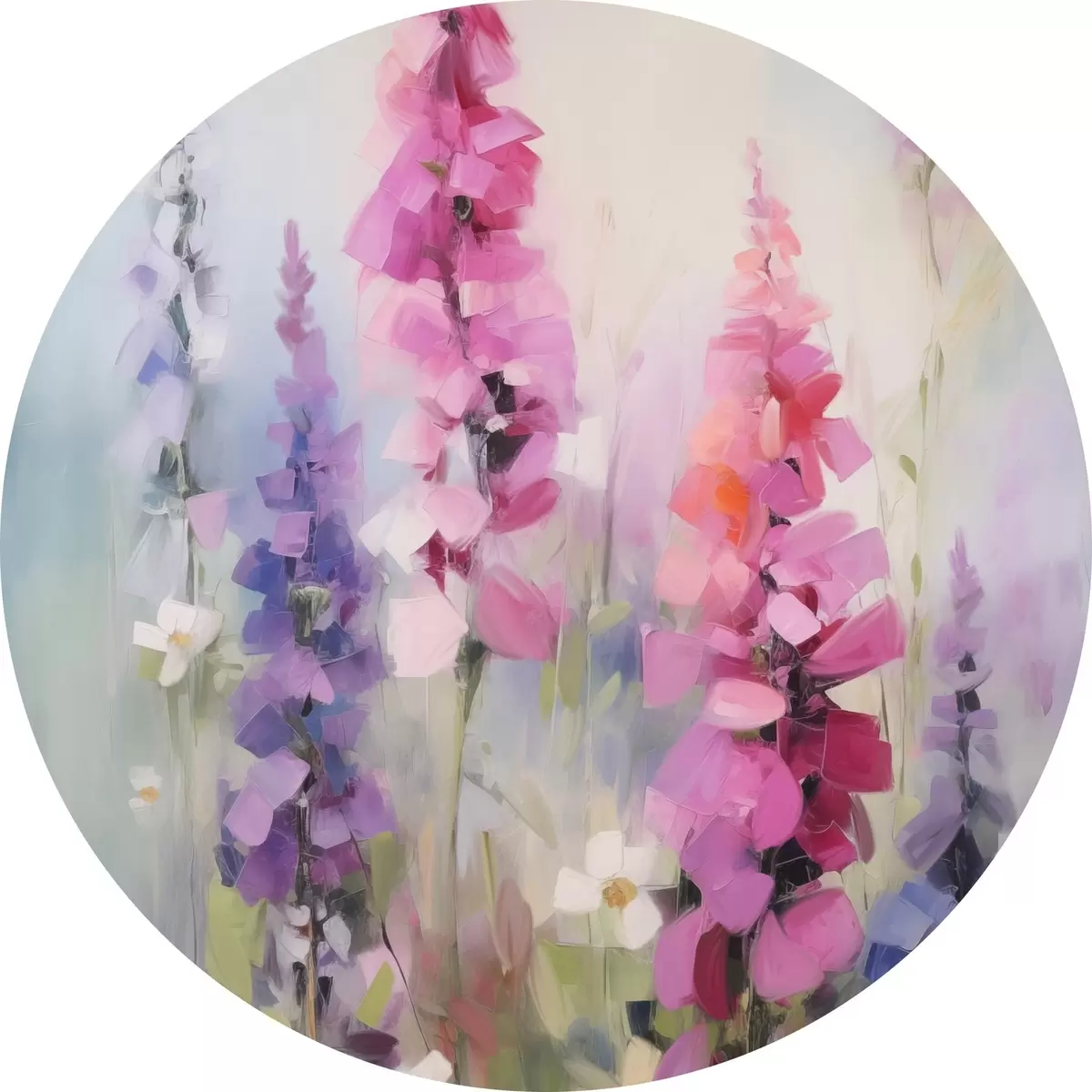 Runde Wandbilder Rosa und violette Blumen mit weißen Gänseblümchen auf einer Wiese, sanfte Pinselstriche, Pastellfarben, impressionistischer Stil r46279
