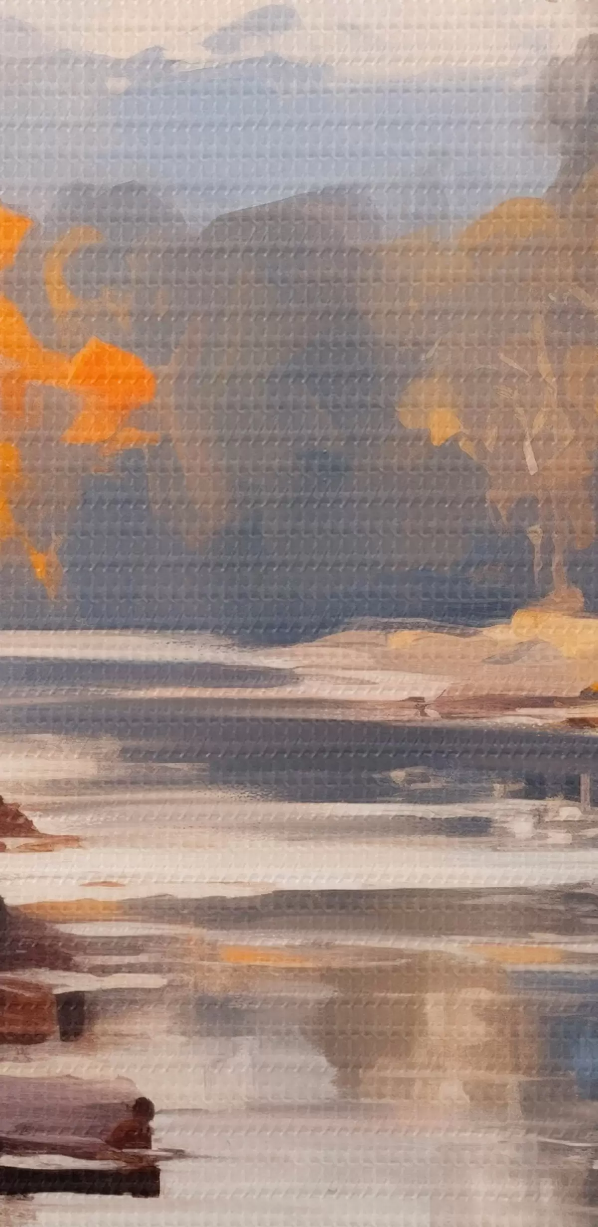 Das feine Fadengeflecht auf dieser Leinwand ähnelt der Oberfläche von professionellen Künstlerleinwänden.