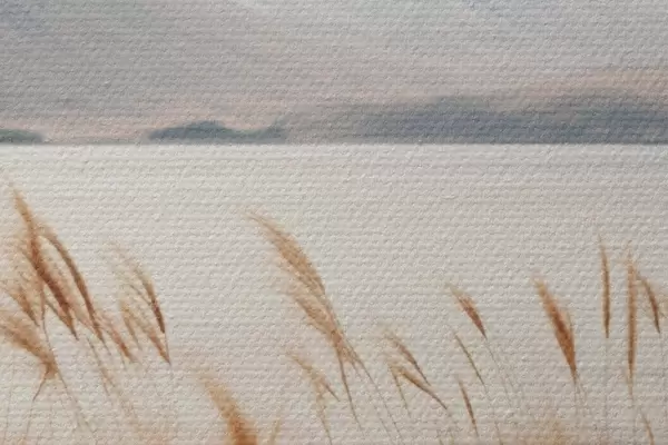 Das feine Fadengeflecht auf dieser Leinwand ähnelt der Oberfläche von professionellen Künstlerleinwänden.