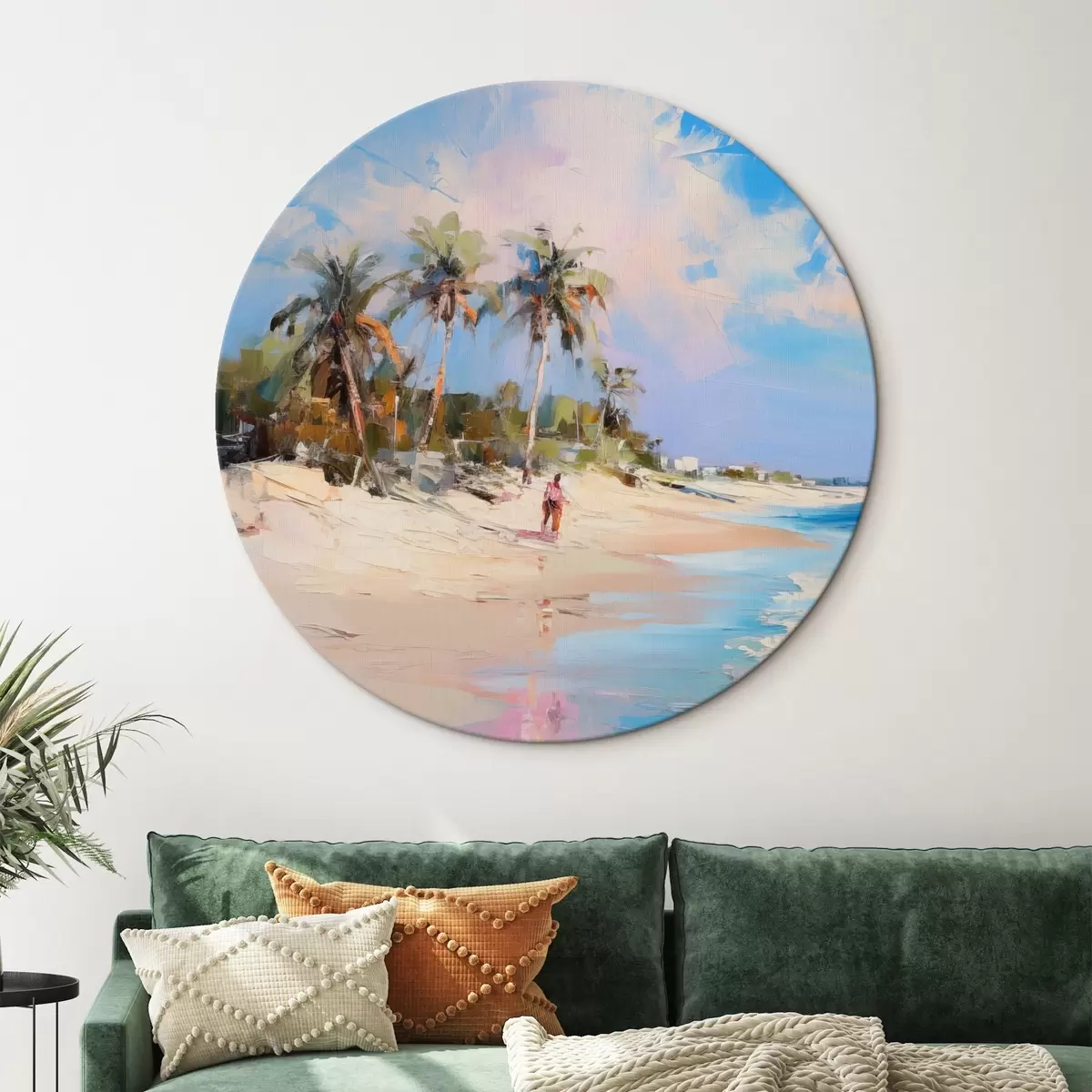 Runde Wandbilder Abstrakte Landschaft, ein Strand mit Palmen, strahlender Sonnenschein mit blauem Himmel und einigen Wolken r46284