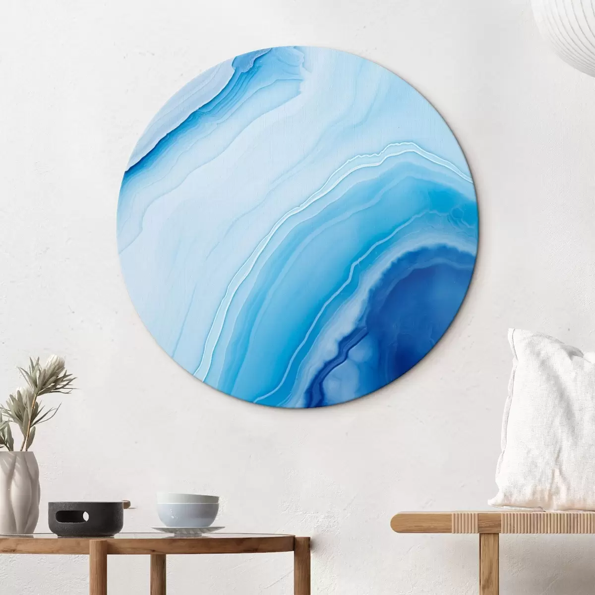Runde Wandbilder Abstrakter blau-weißer Achatdruck, wirbelnde Linien und Farbverläufe, glatte Textur, moderne Kunst, minimalistisch Nr r46290