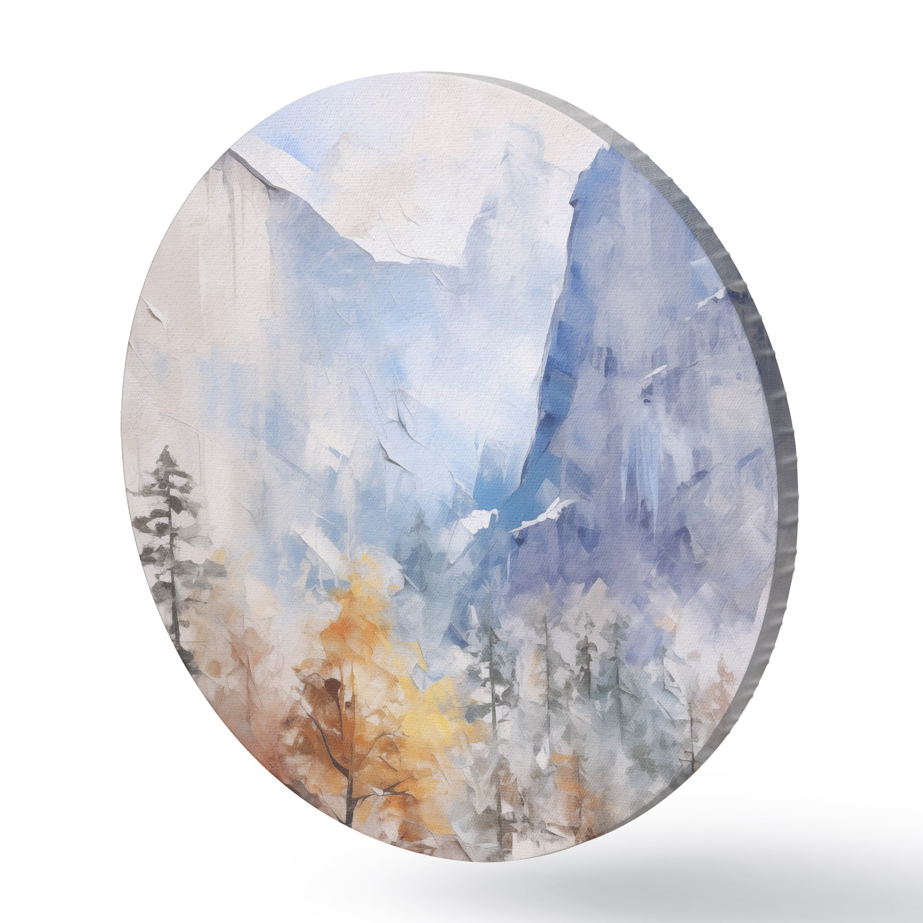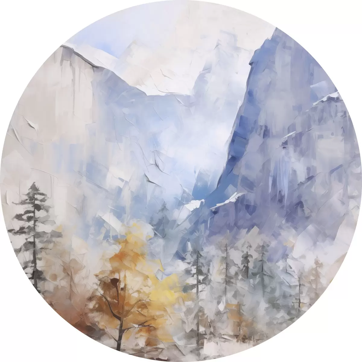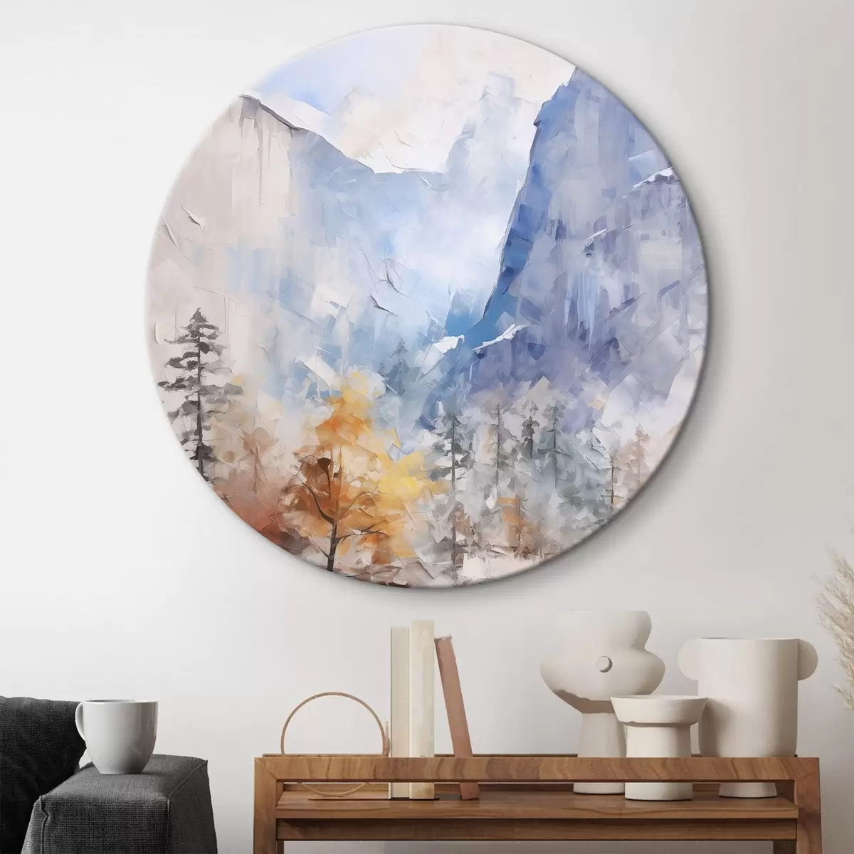 Runde Wandbilder Abstrakte Landschaft mit Wald vor Bergen Nr r46298