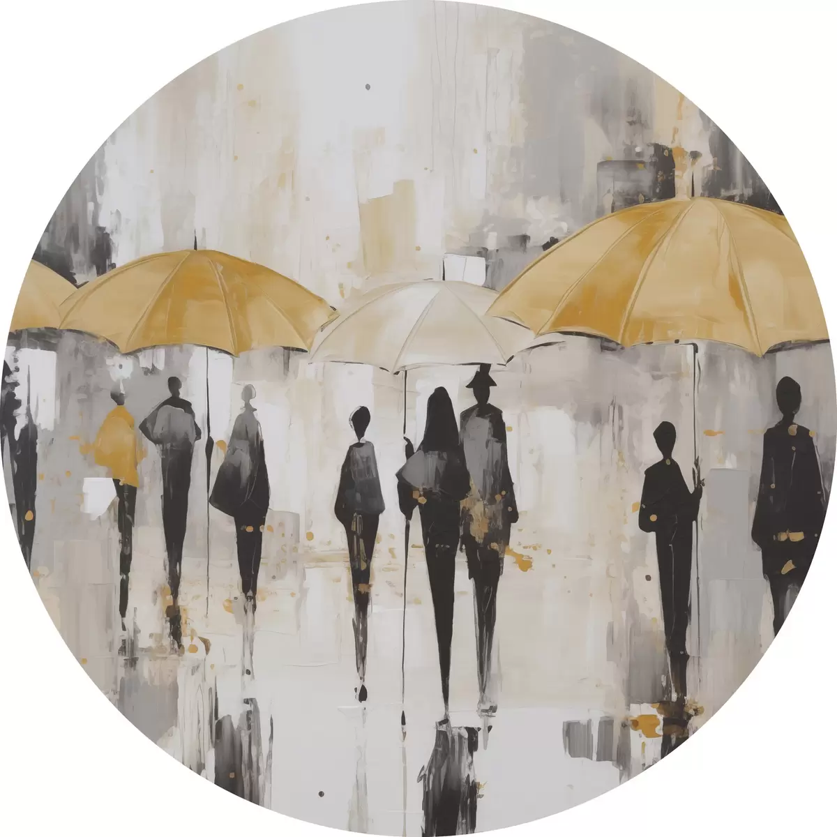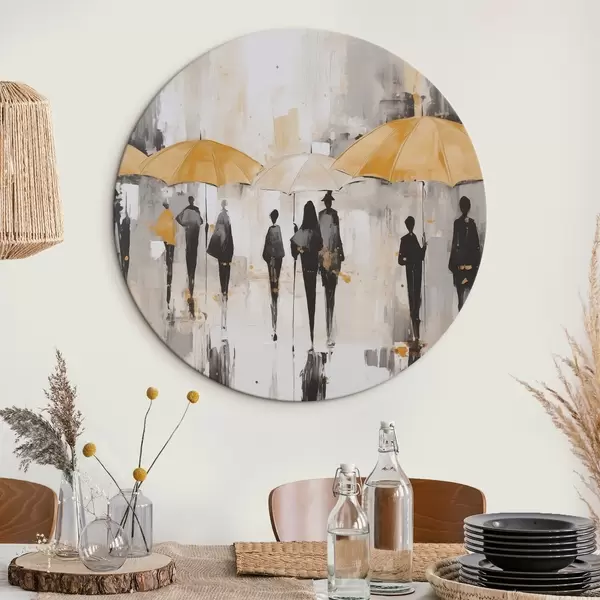 Runde Wandbilder Abstraktion von Menschen mit Regenschirmen r46304