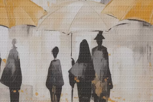 Runde Wandbilder Abstraktion von Menschen mit Regenschirmen r46304