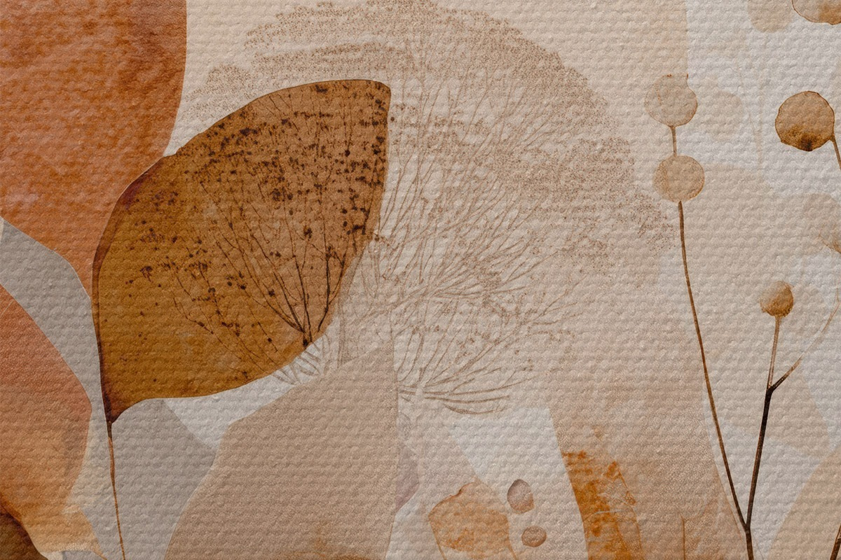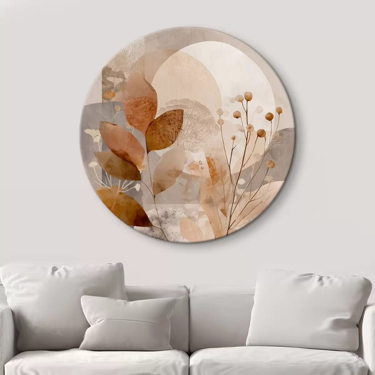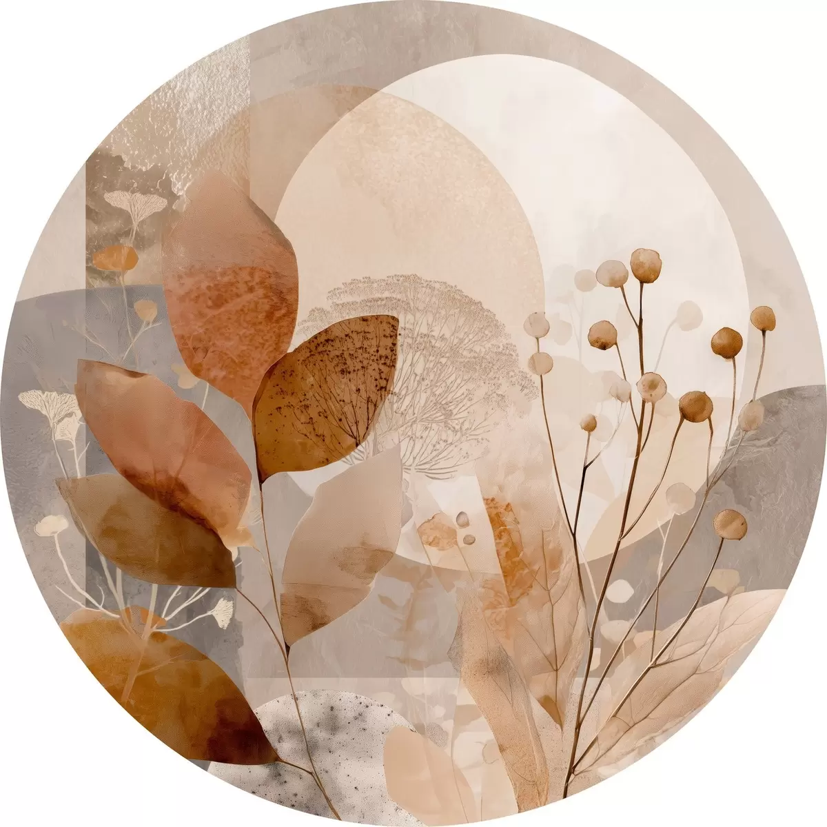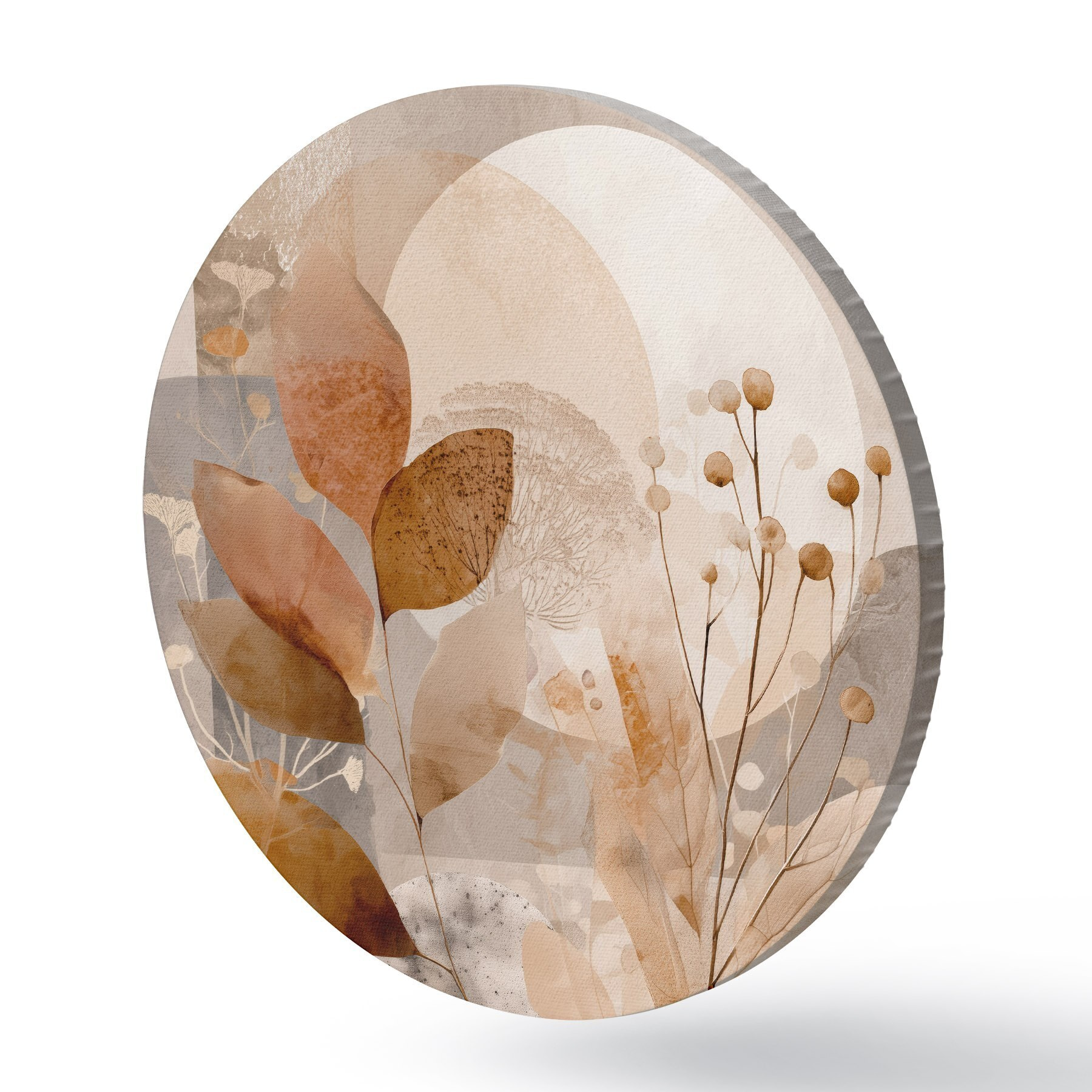 Runde Wandbilder Blumenmuster in Beige und Braun r46308