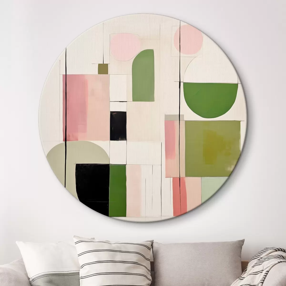 Runde Wandbilder Abstrakte Kunst mit bunten Blöcken und Linien Nr r46313