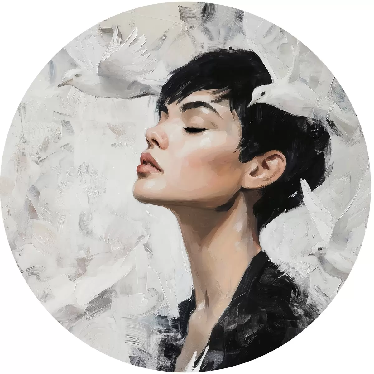 Runde Wandbilder Mädchen und Vögel Nr r46365