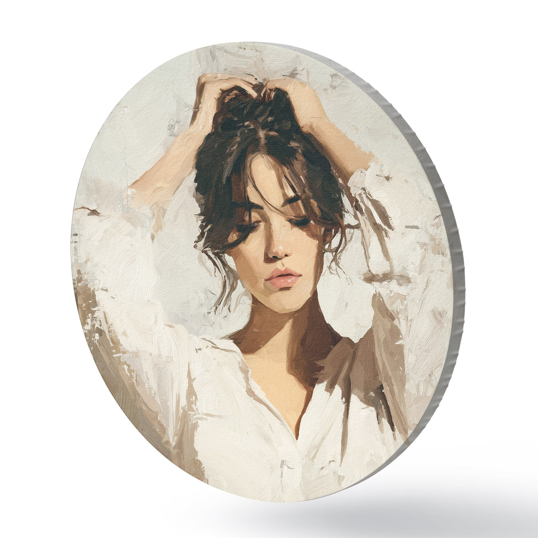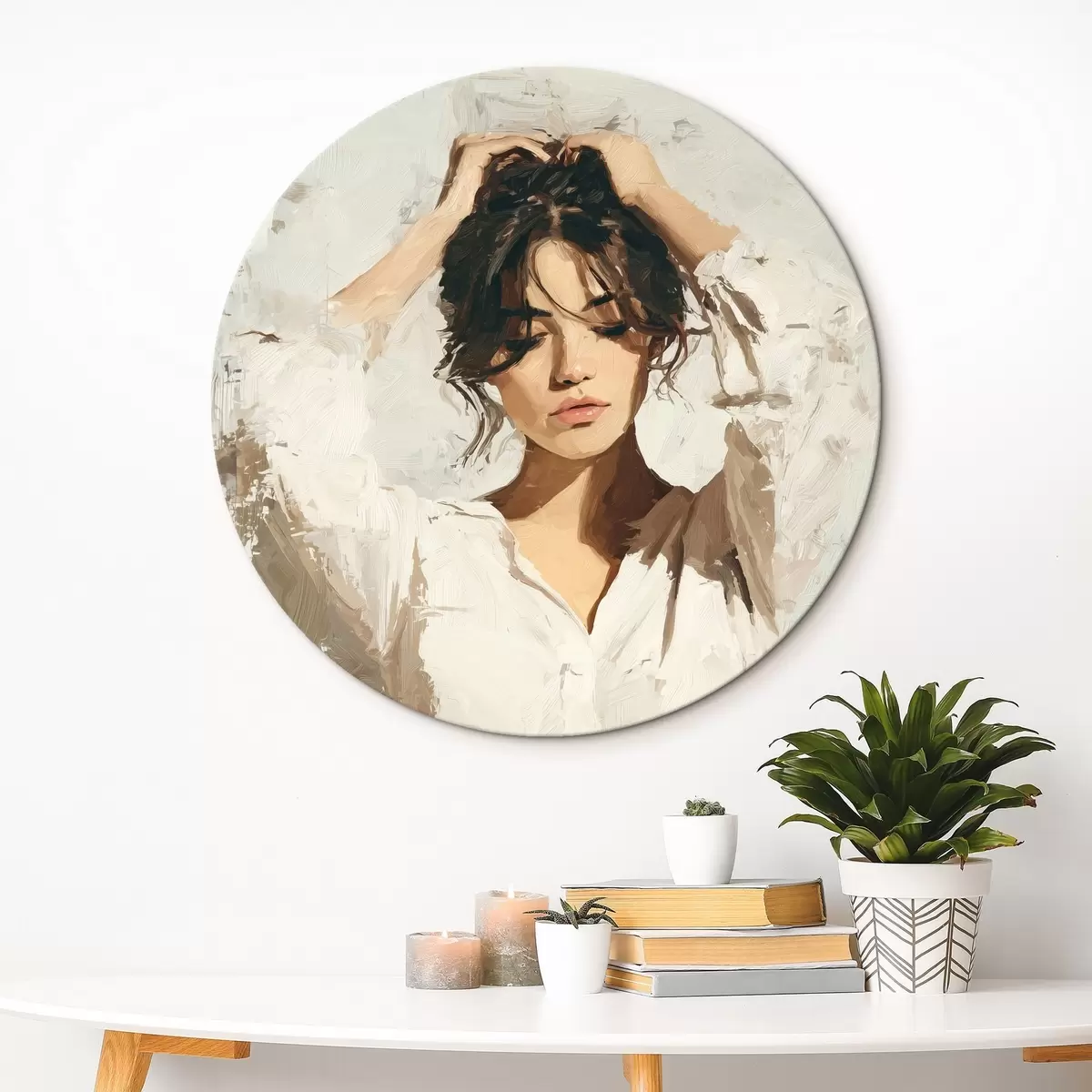 Runde Wandbilder Frau in Weiß r46366