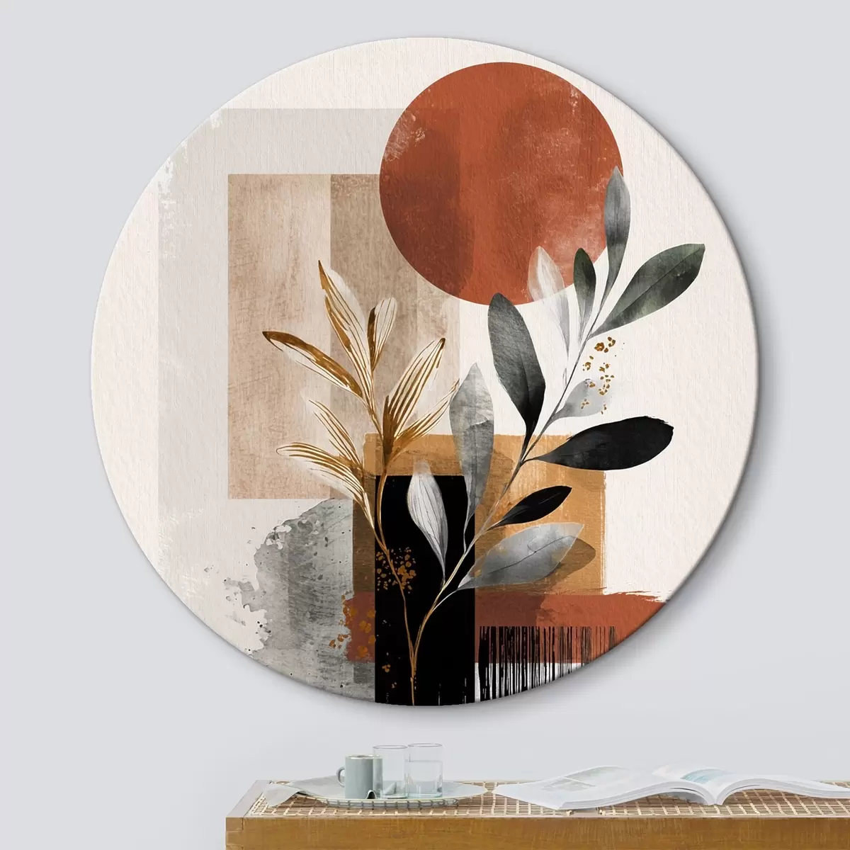 Runde Wandbilder Geometrie und Blätter Abstraktion r46388