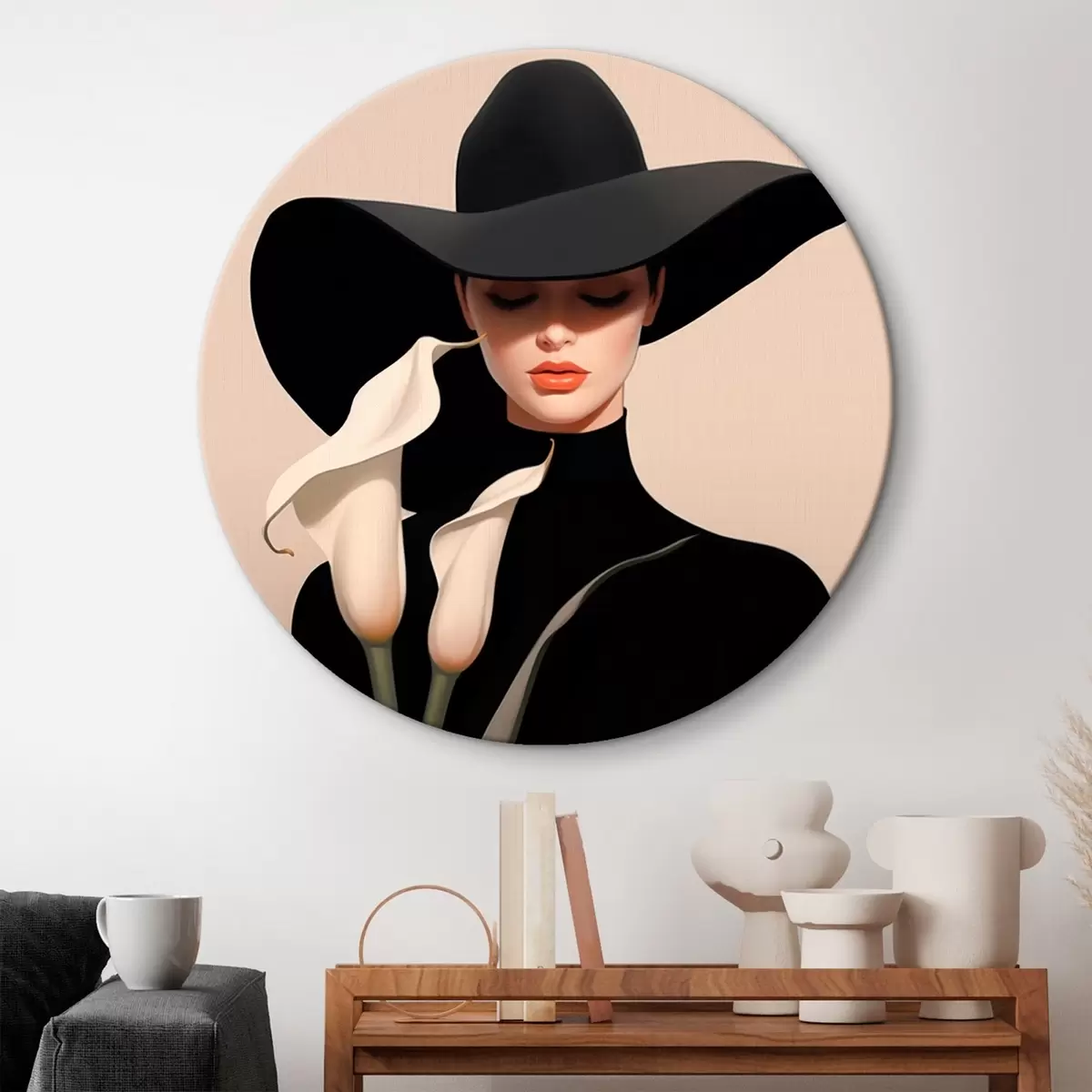 Runde Wandbilder Mädchen mit Hut und Calas r46420