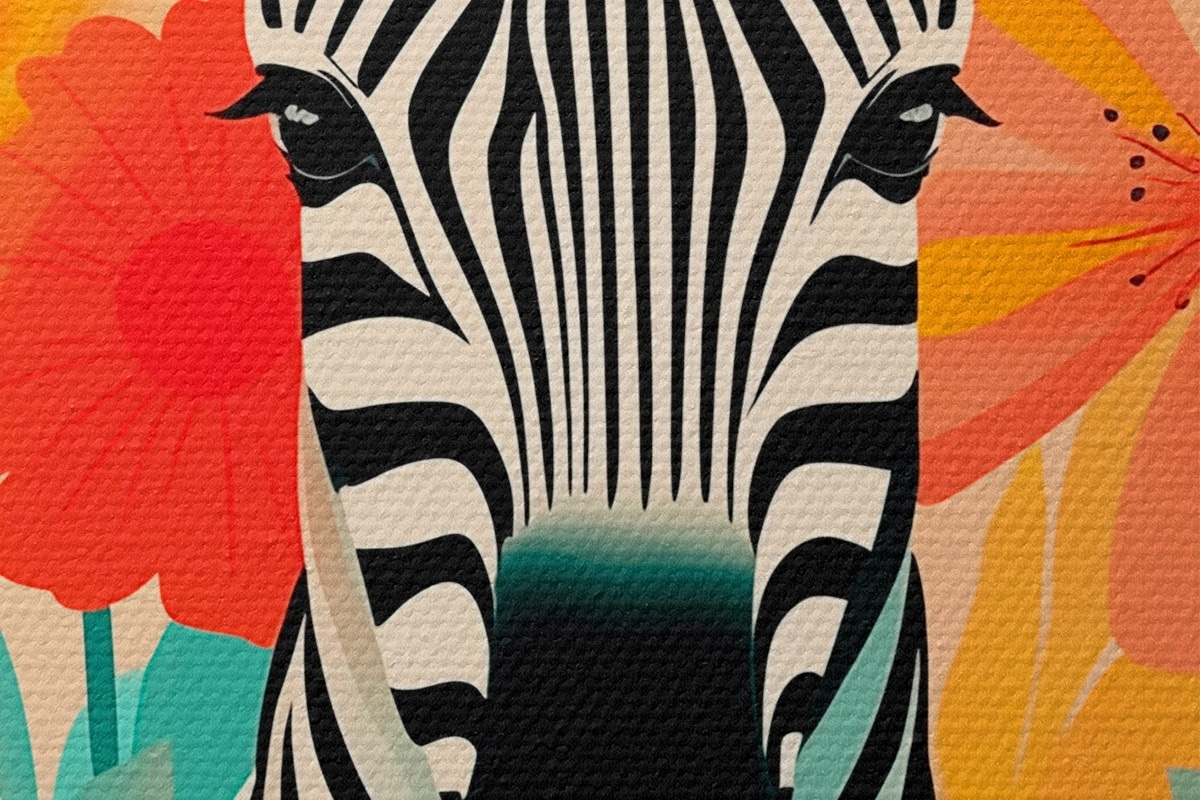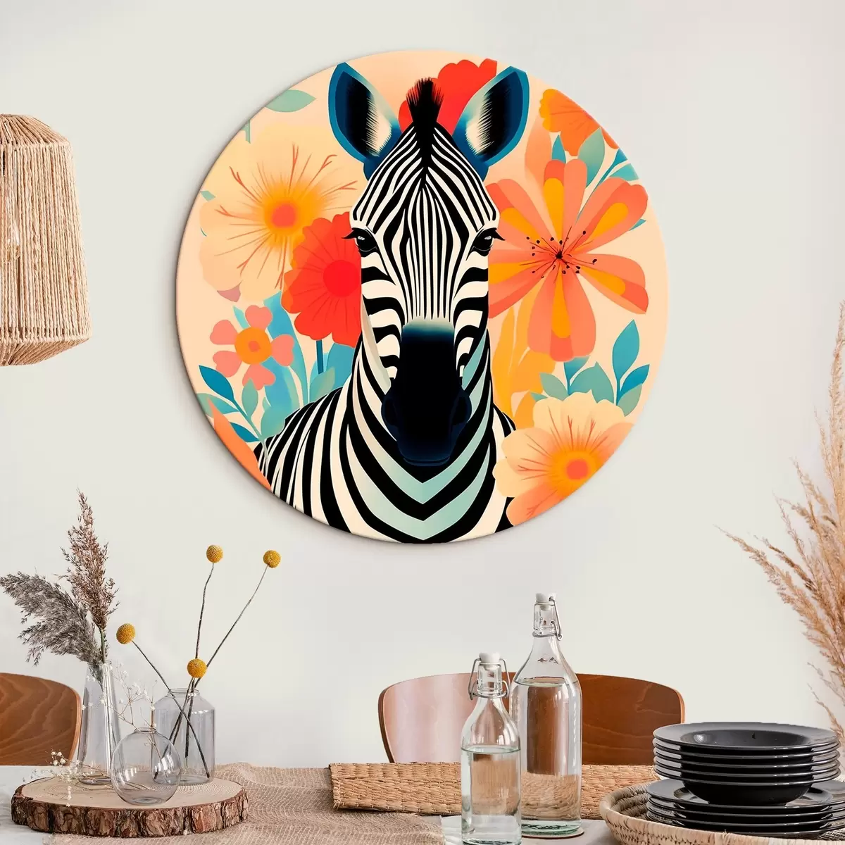 Runde Wandbilder Zebra zwischen Blumen r46457