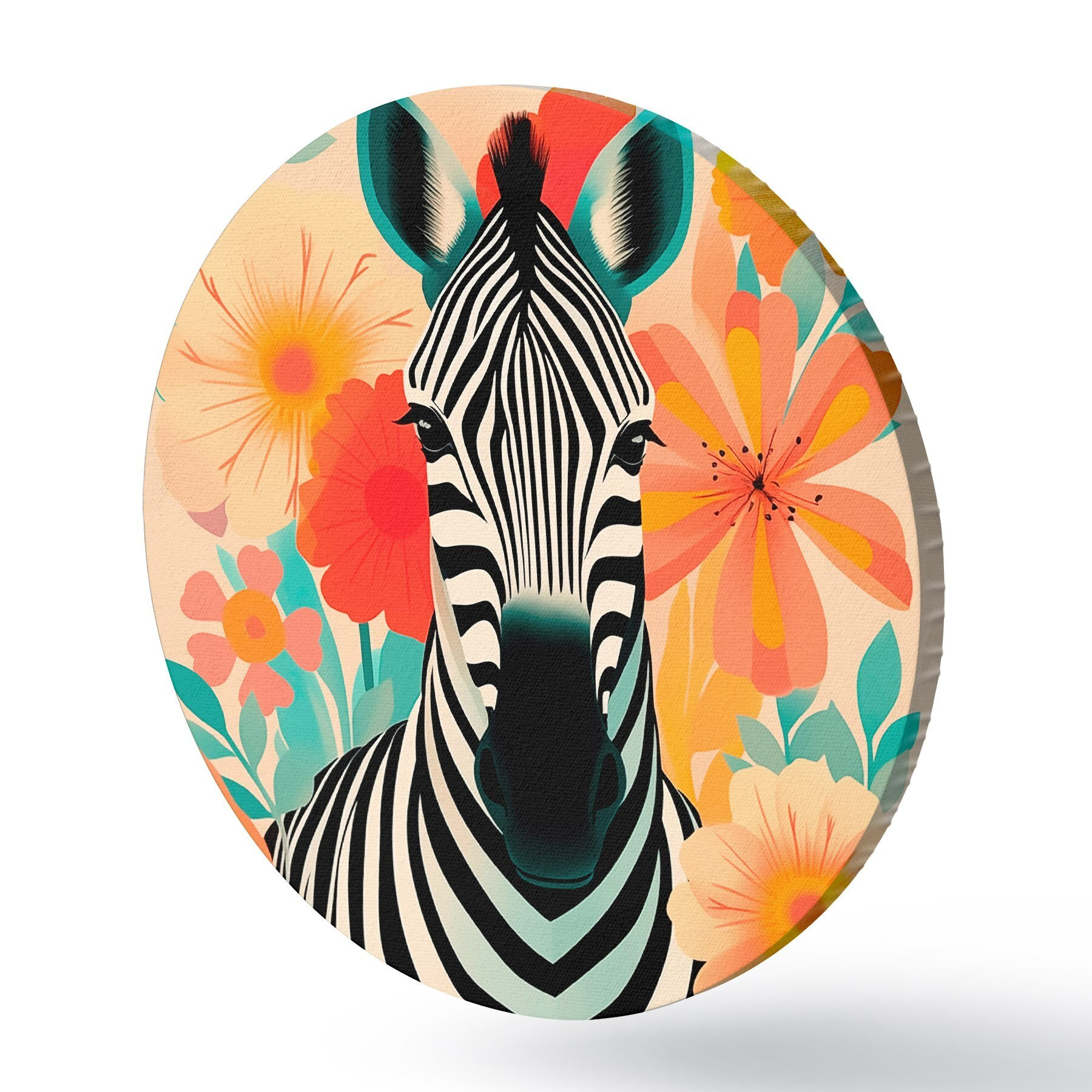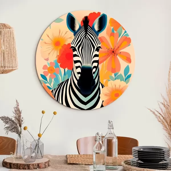 Runde Wandbilder Zebra zwischen Blumen Nr r46457