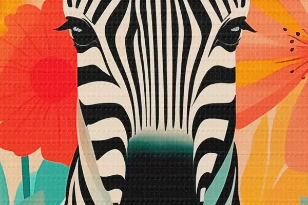 Runde Wandbilder Zebra zwischen Blumen Nr r46457