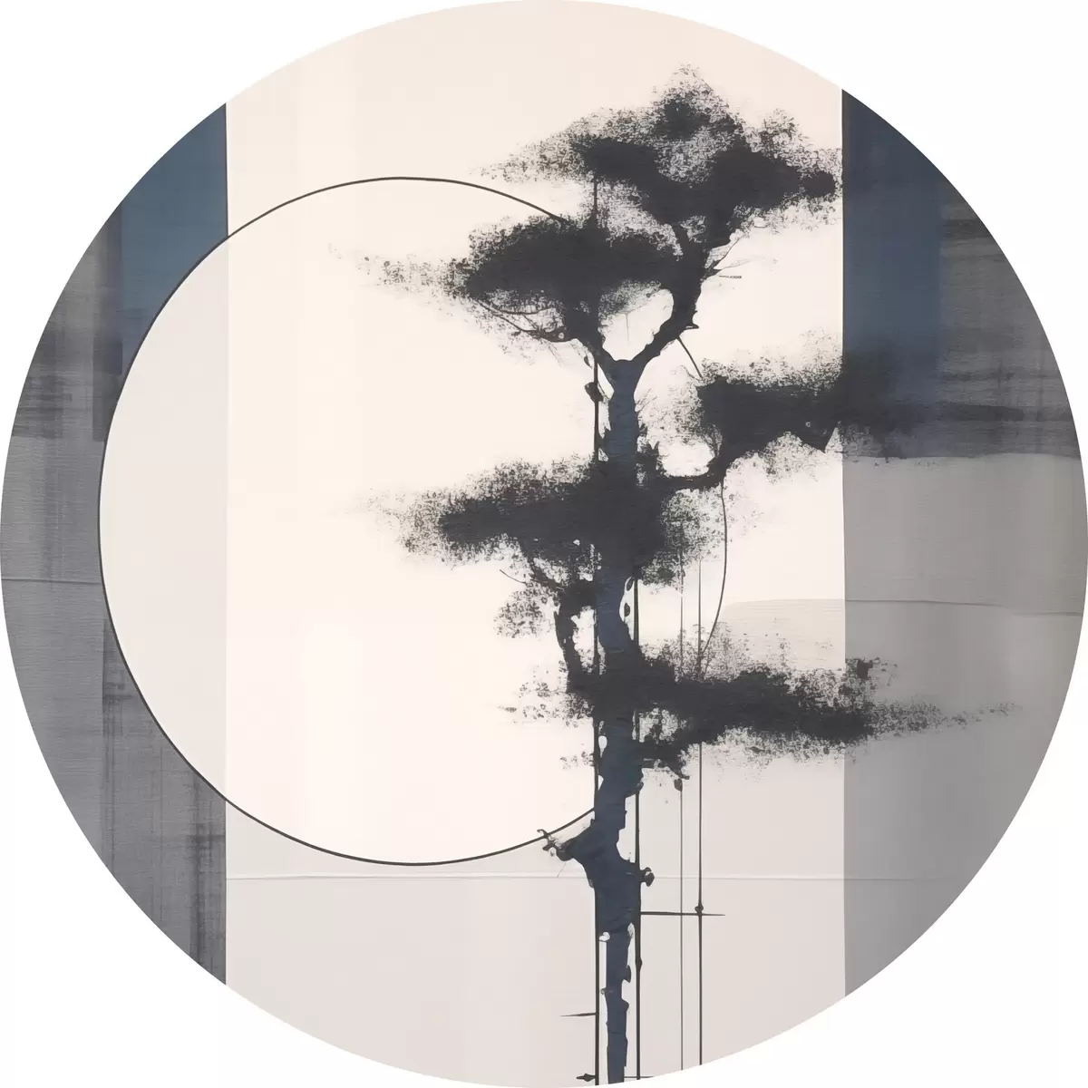 Runde Wandbilder Abstraktion. Baum und Sonne. Japanischer Minimalismus Nr r46463