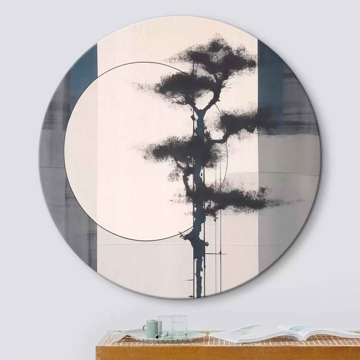 Runde Wandbilder Abstraktion. Baum und Sonne. Japanischer Minimalismus r46463