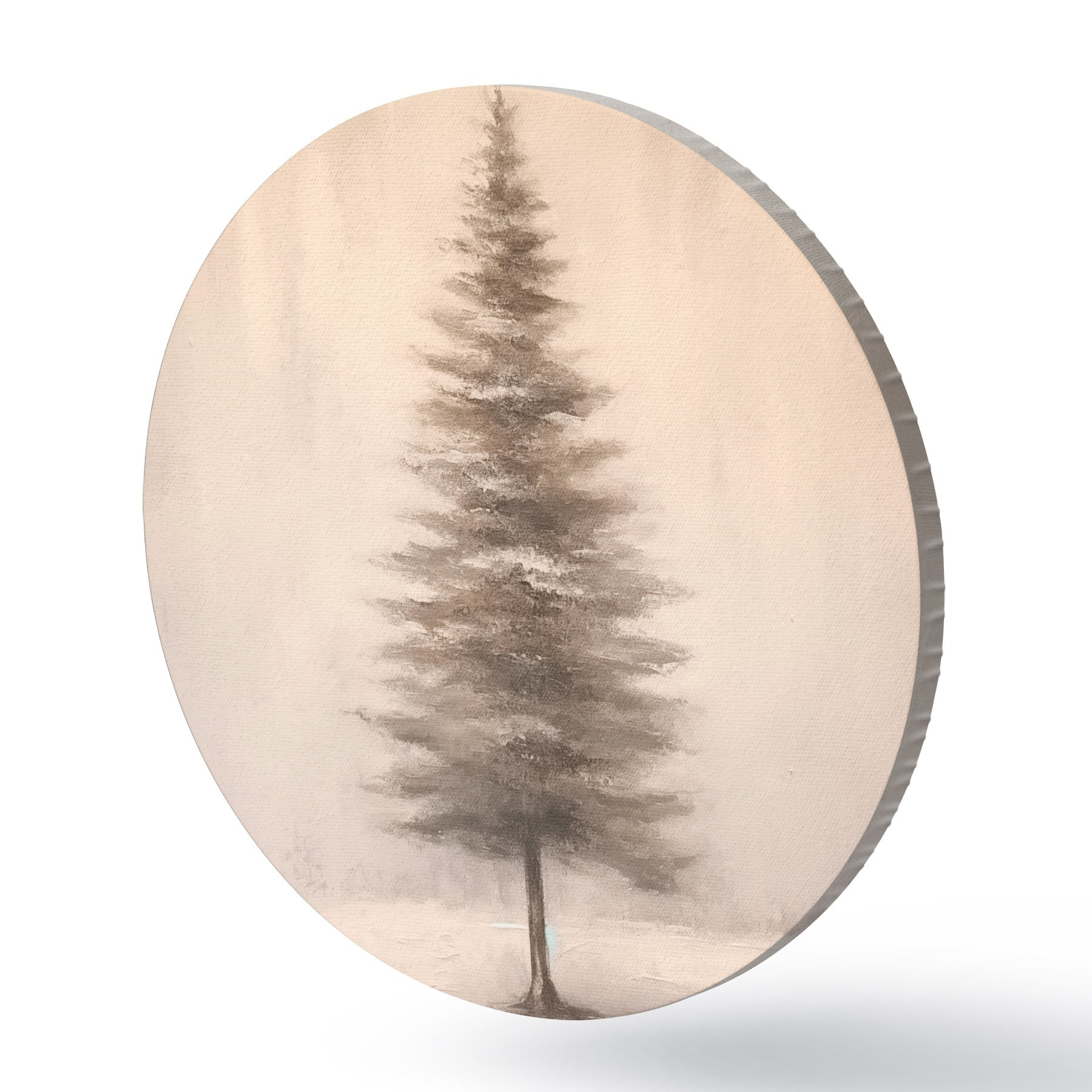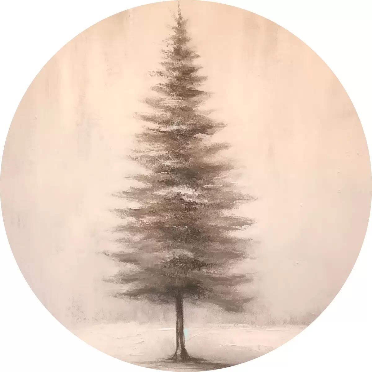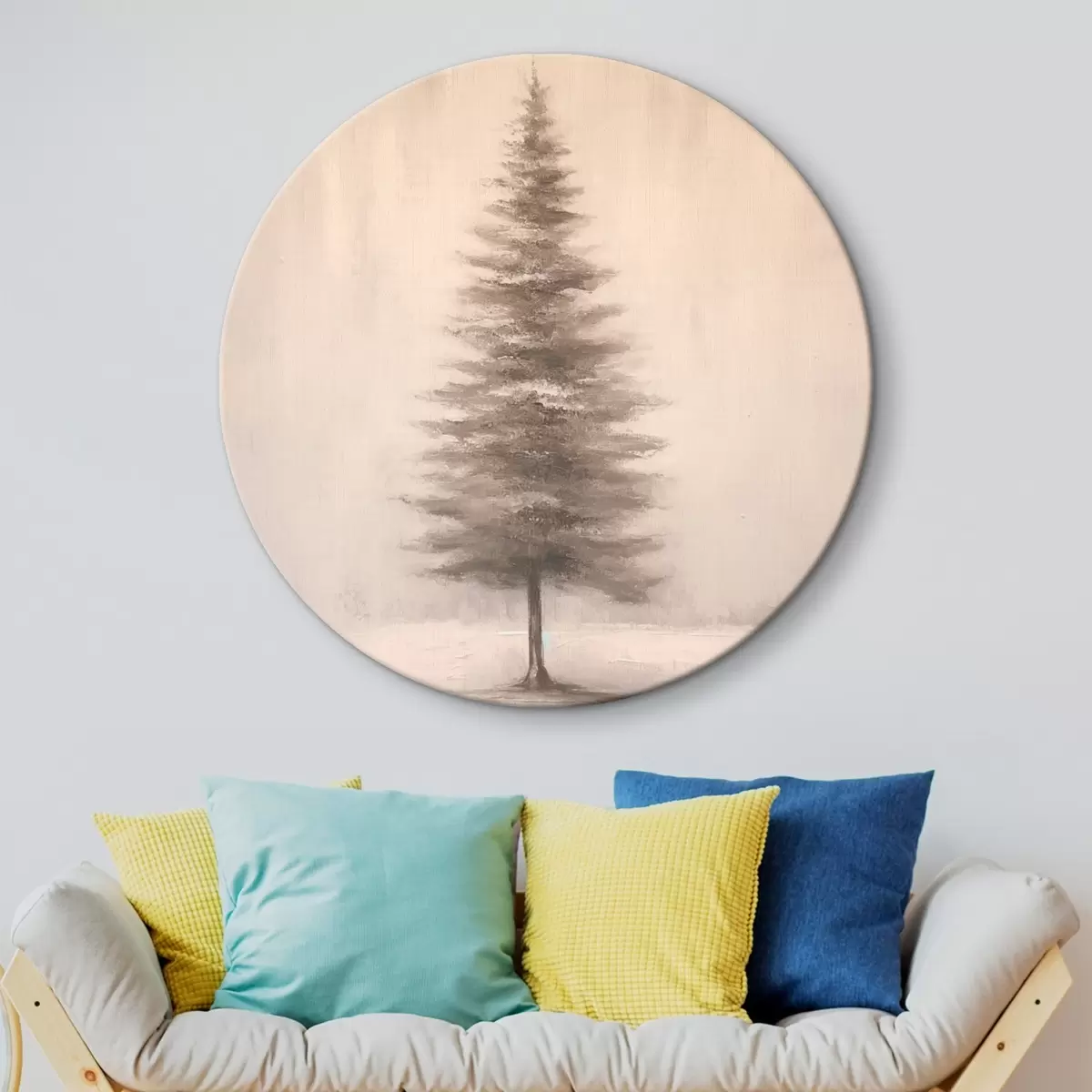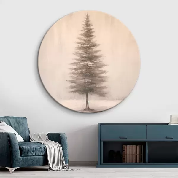Runde Wandbilder Monochrome Tanne. Minimalistische Winterlandschaft r46465